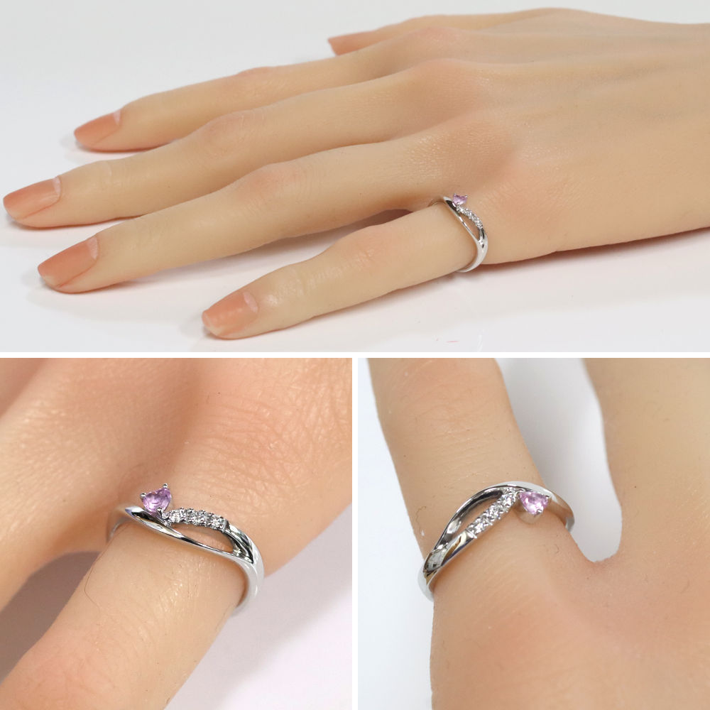 緩やかなカーブを描いた土台に、ダイヤモンドとハート型のトルマリンがセットされた可愛らしいデザインです。