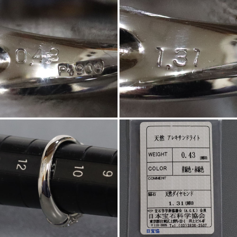 Pt900アレキサンドライトダイヤモンドリング A0.43 D1.31 8.8g #11