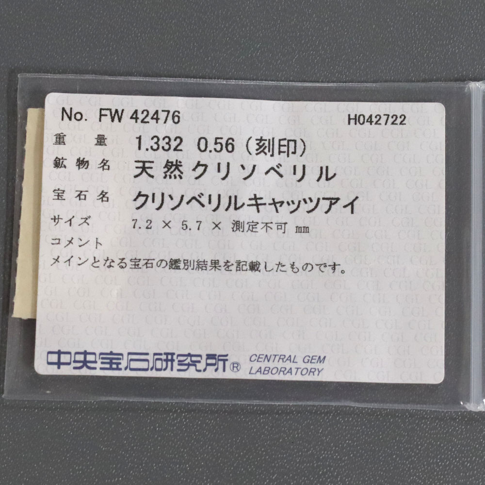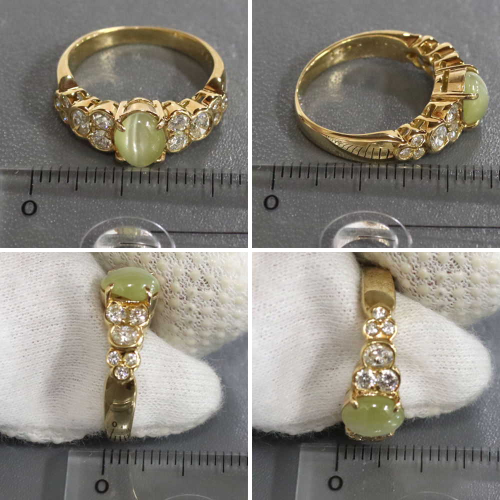 K18クリソベリルキャッツアイダイヤモンドリング 1.332 D0.56 4.9g #10.5