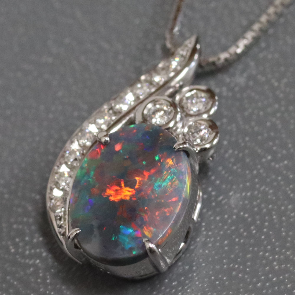 K18WGブラックオパールダイヤモンドペンダント BkO1.05 D0.20 5.4g