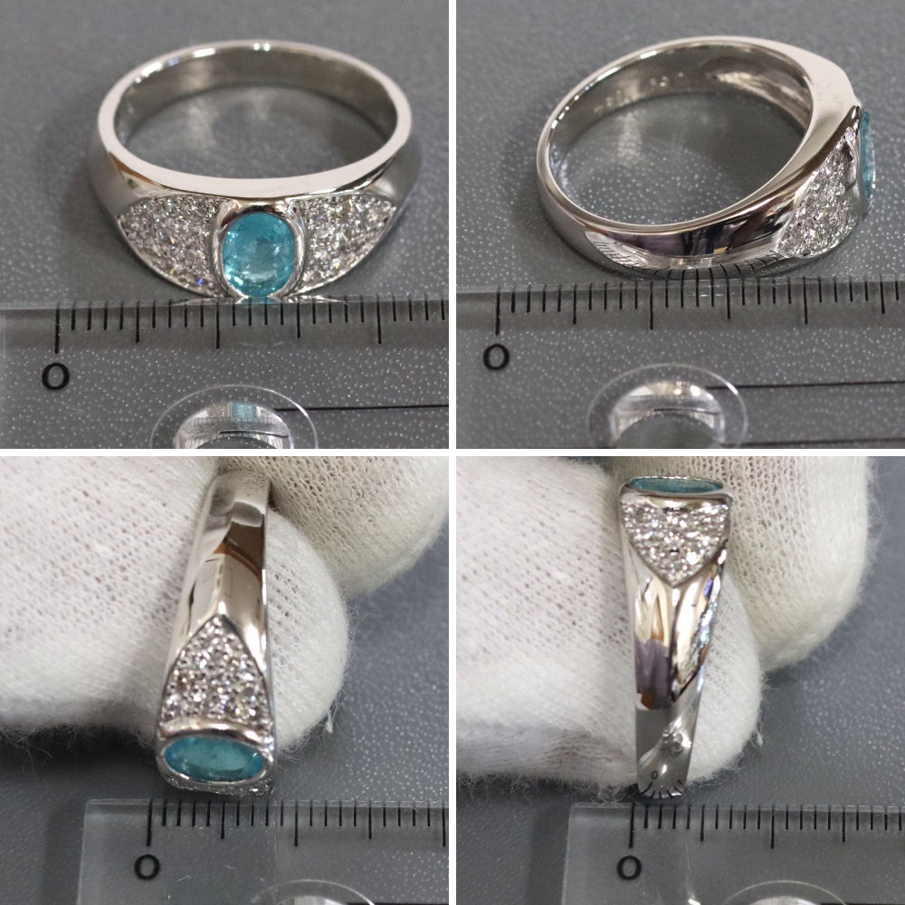 K18WGパライバトルマリンダイヤモンドリング T0.597 D0.34 7.0g #15.5