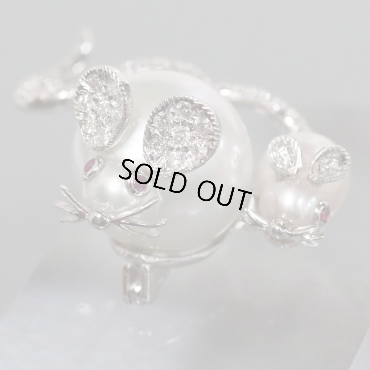 K18WGパールダイヤモンドルビーブローチ ネズミモチーフ 7.1g [23096027]