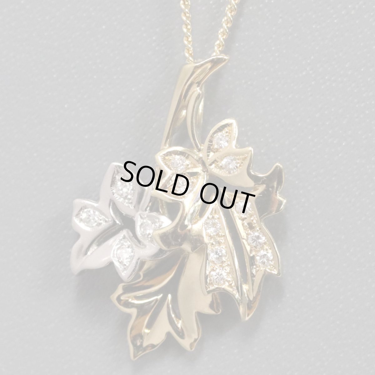 K18/Pt900ダイヤモンドペンダント リーフモチーフ D0.15 5.3g