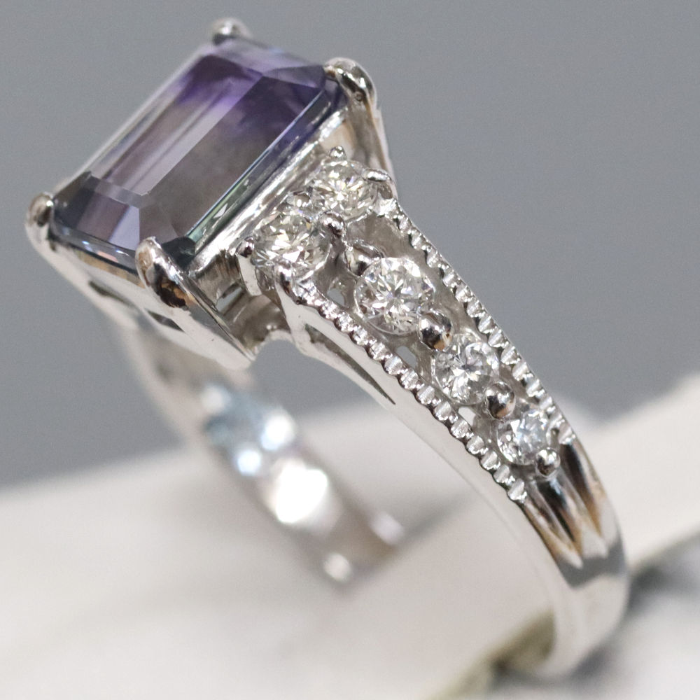 Pt900バイカラーゾイサイトダイヤモンドリングの中古品です。