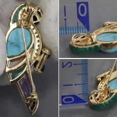 750マルチカラーストーンペンダントトップ/ブローチ バードモチーフ 11.9g [24096020]