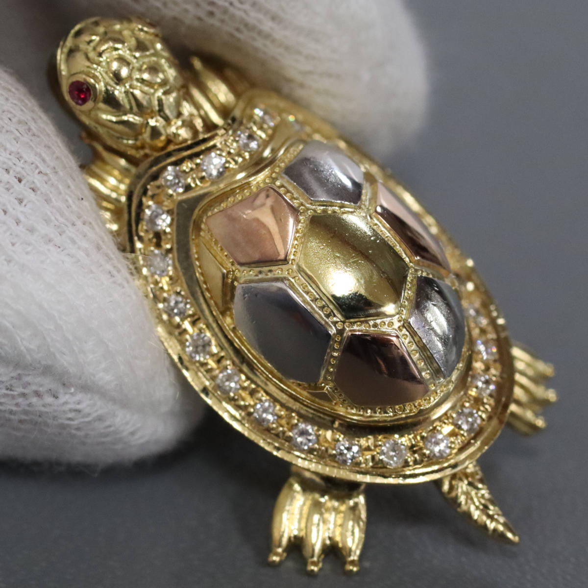 K24/K18/Pt900ダイヤモンドペンダントトップ 亀モチーフ D0.24 12.9g 観音様