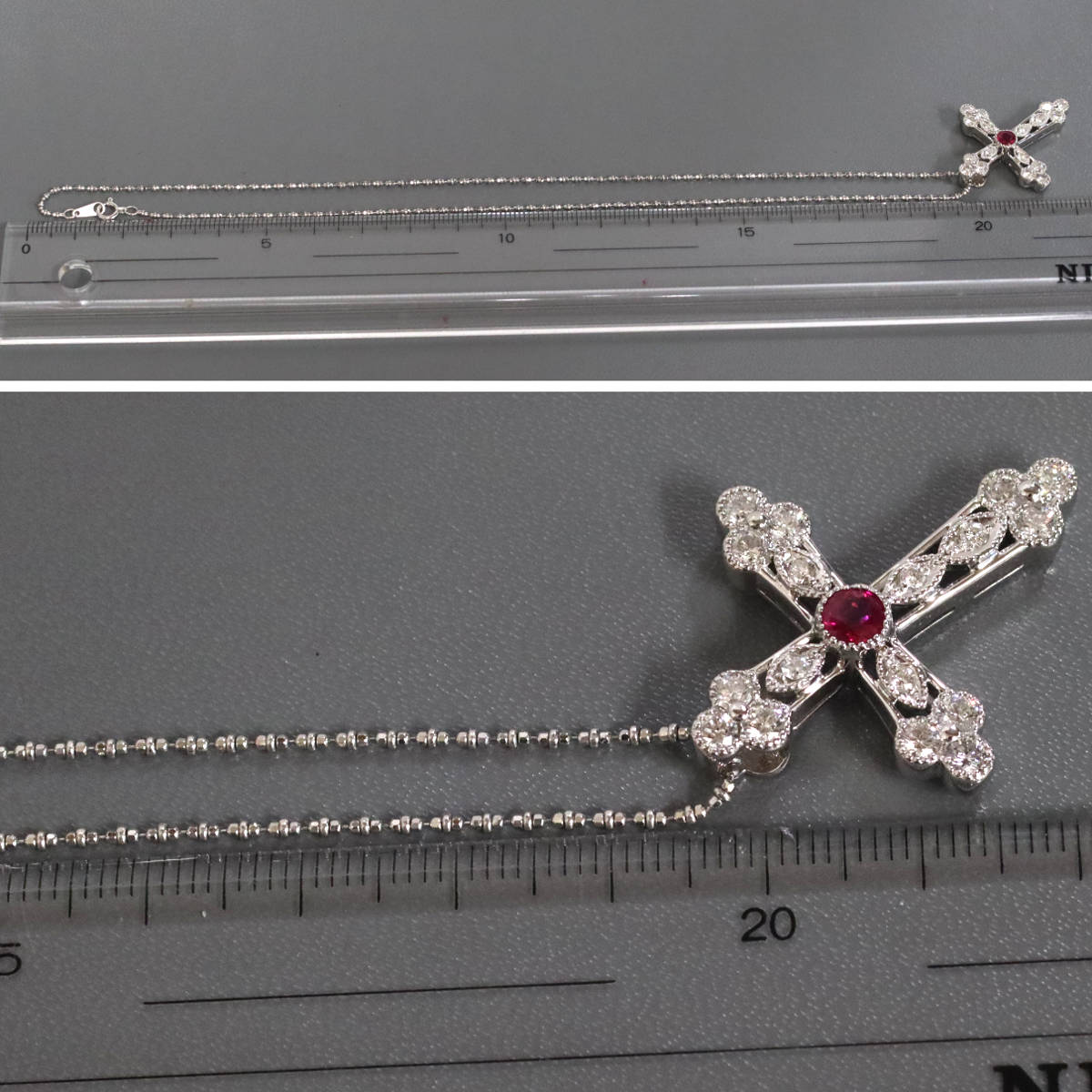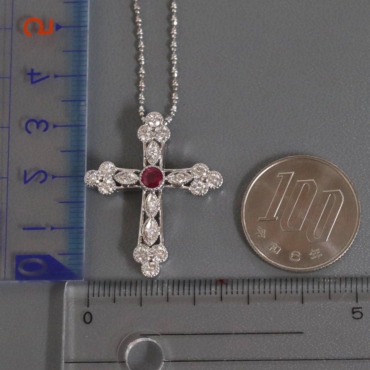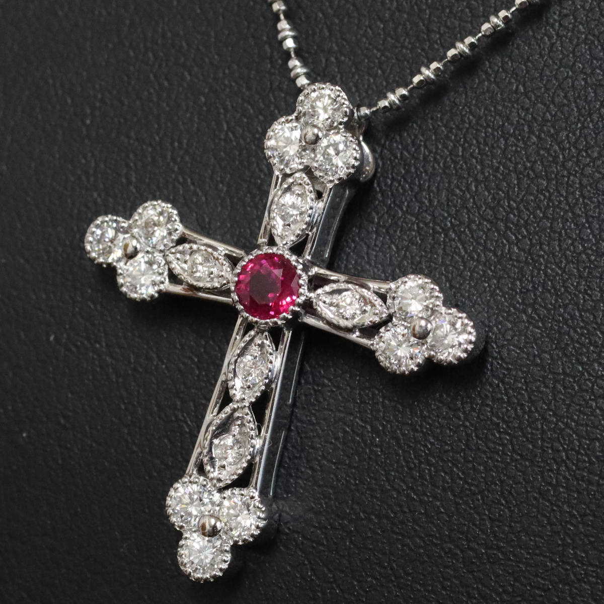 K18WGダイヤモンドルビーペンダント クロスモチーフ D1.00 R0.34 9.2g 39cm [25096044]