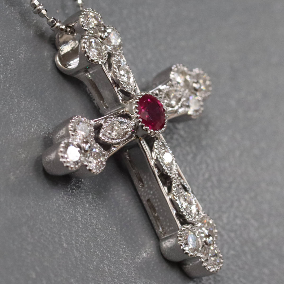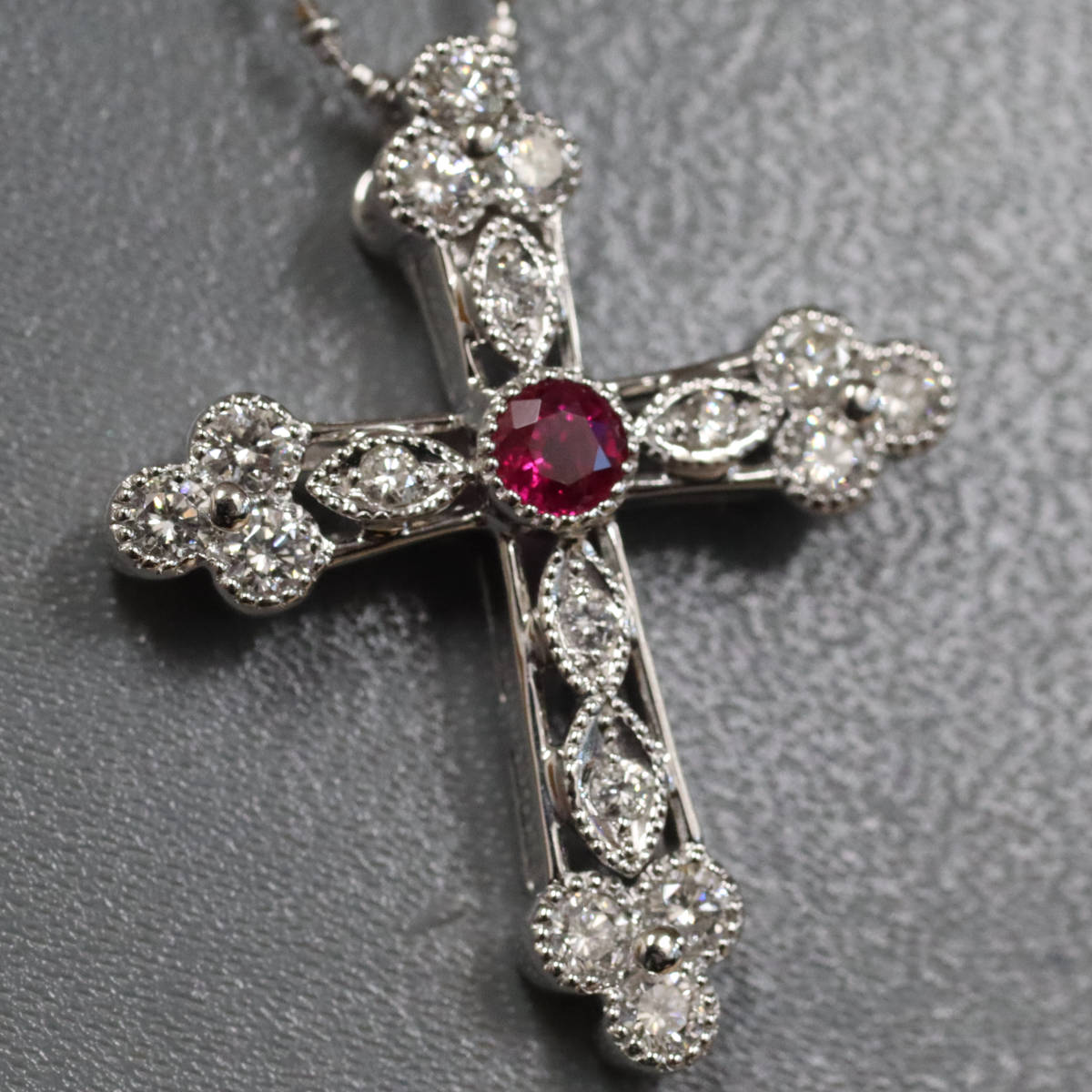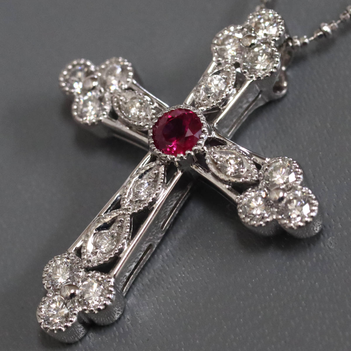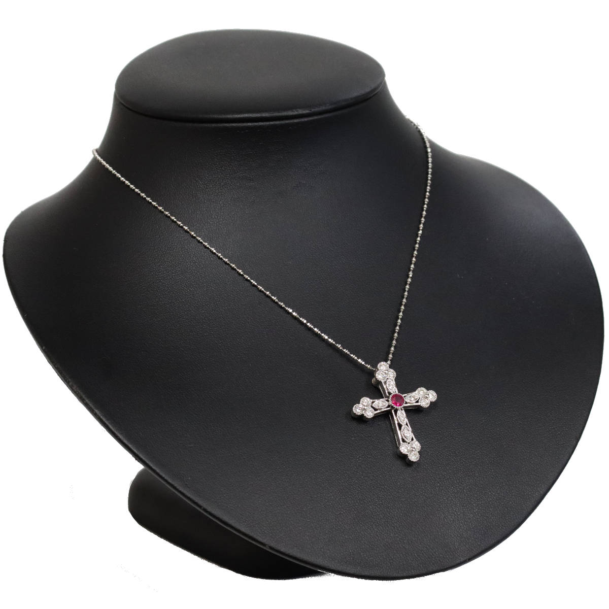 K18WGダイヤモンドルビーペンダント クロスモチーフ D1.00 R0.34 9.2g 39cm [25096044]