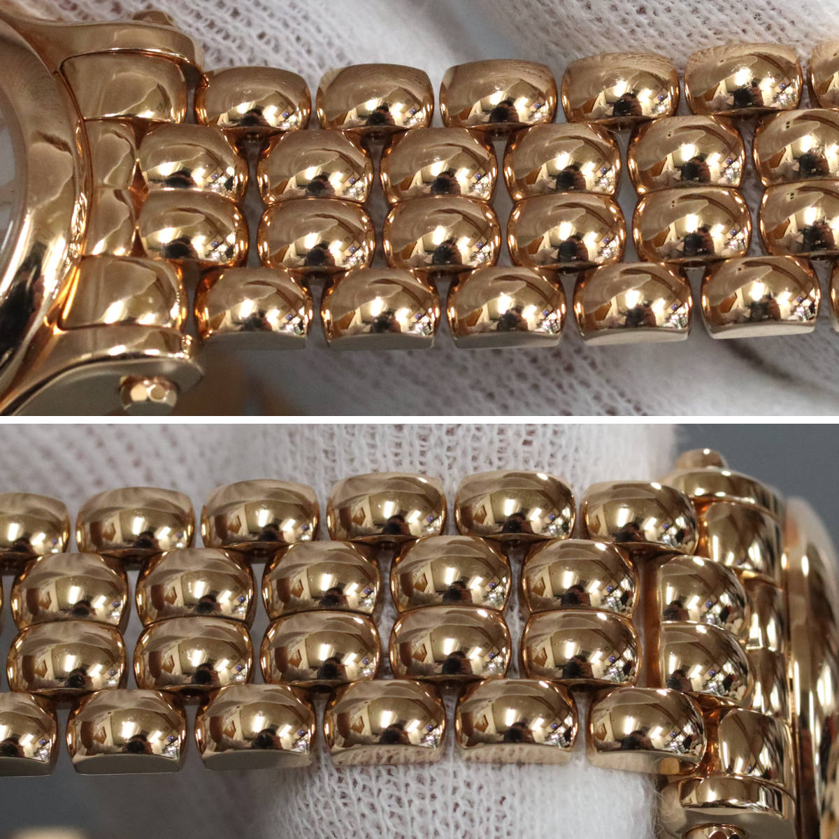 ケース・ベルトともに18Kローズゴールド製です。