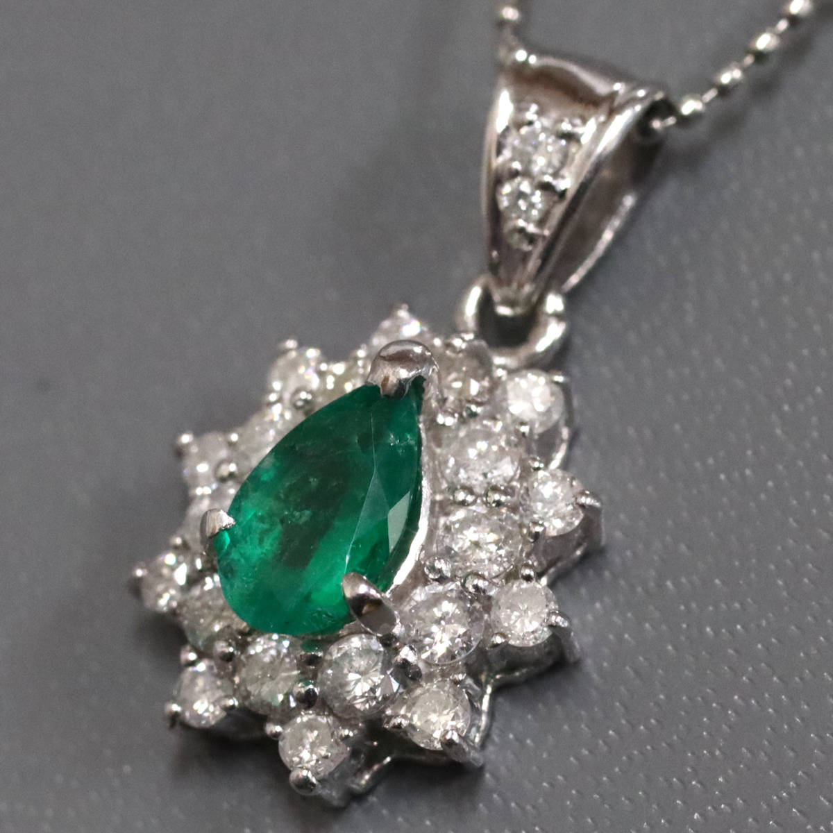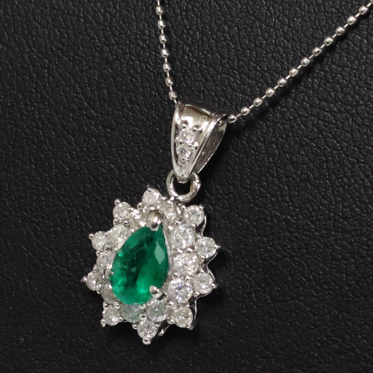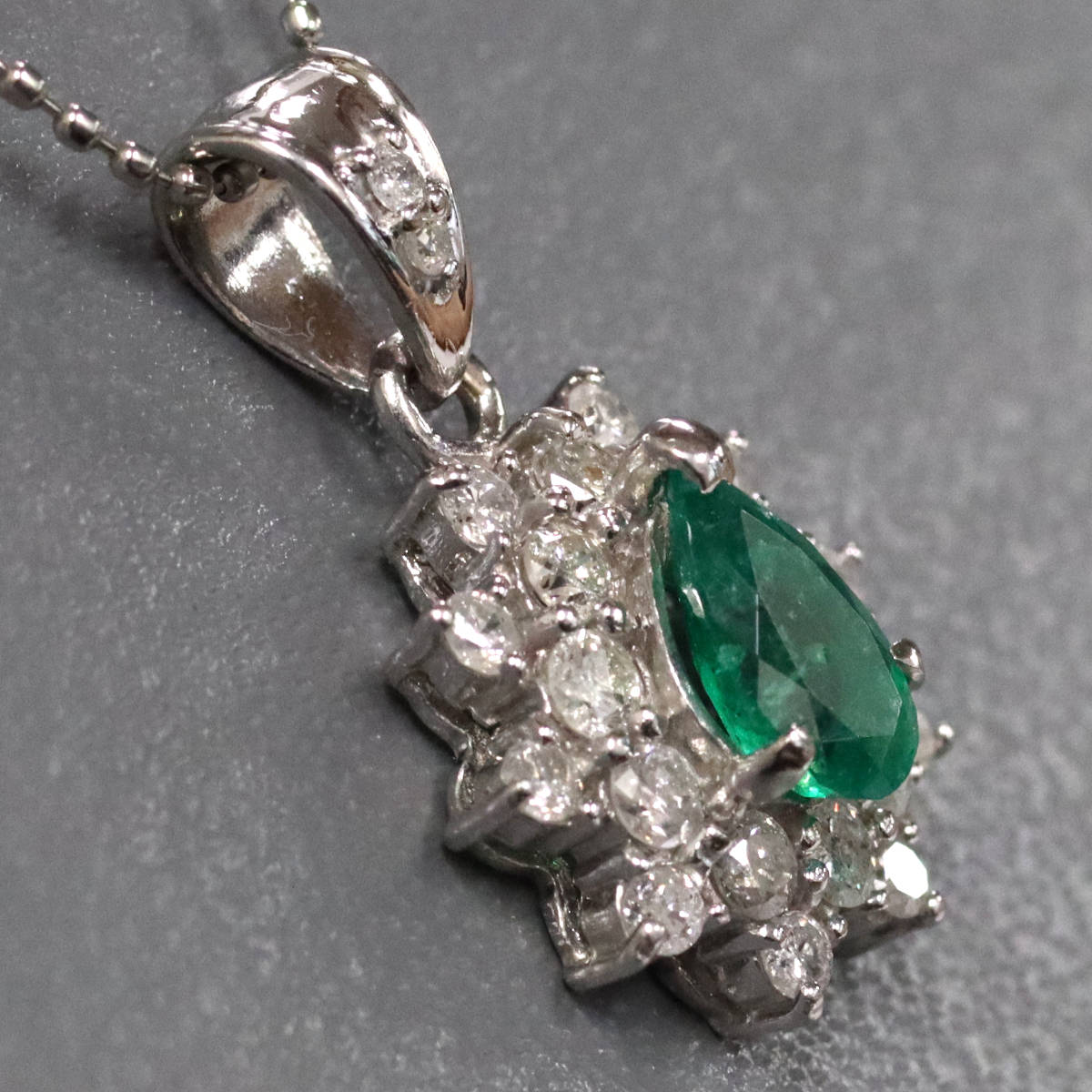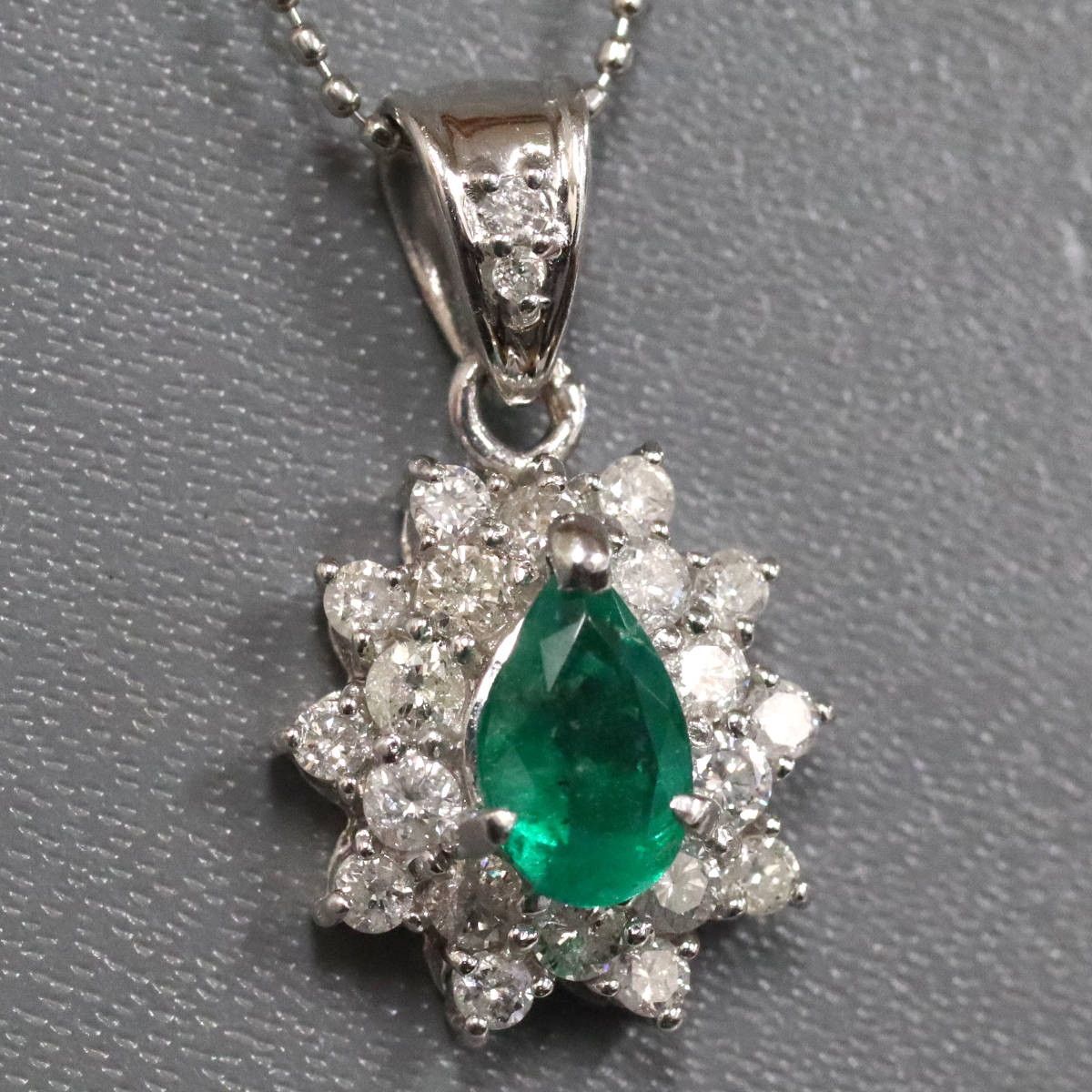 Pt900/850エメラルドダイヤモンドペンダント E0.59 D0.68 5.1g 45cm [25103041]