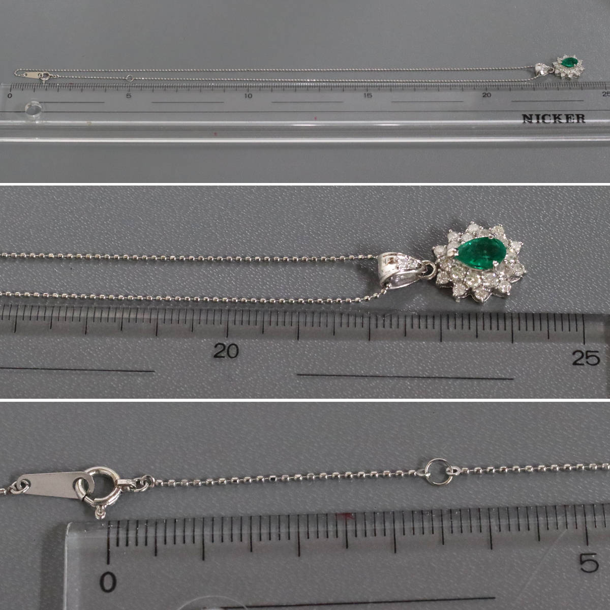 Pt900/850エメラルドダイヤモンドペンダント E0.59 D0.68 5.1g 45cm
