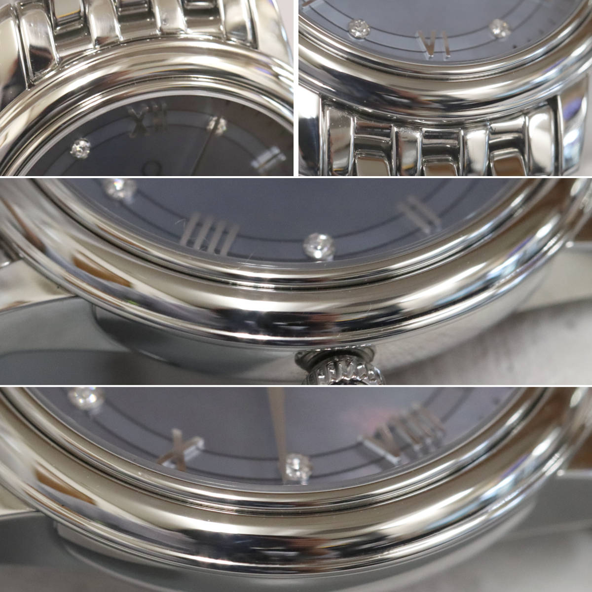ブルーのマザーオブパール文字盤とインデックスの6Pダイヤモンドがエレガンスな時計です。