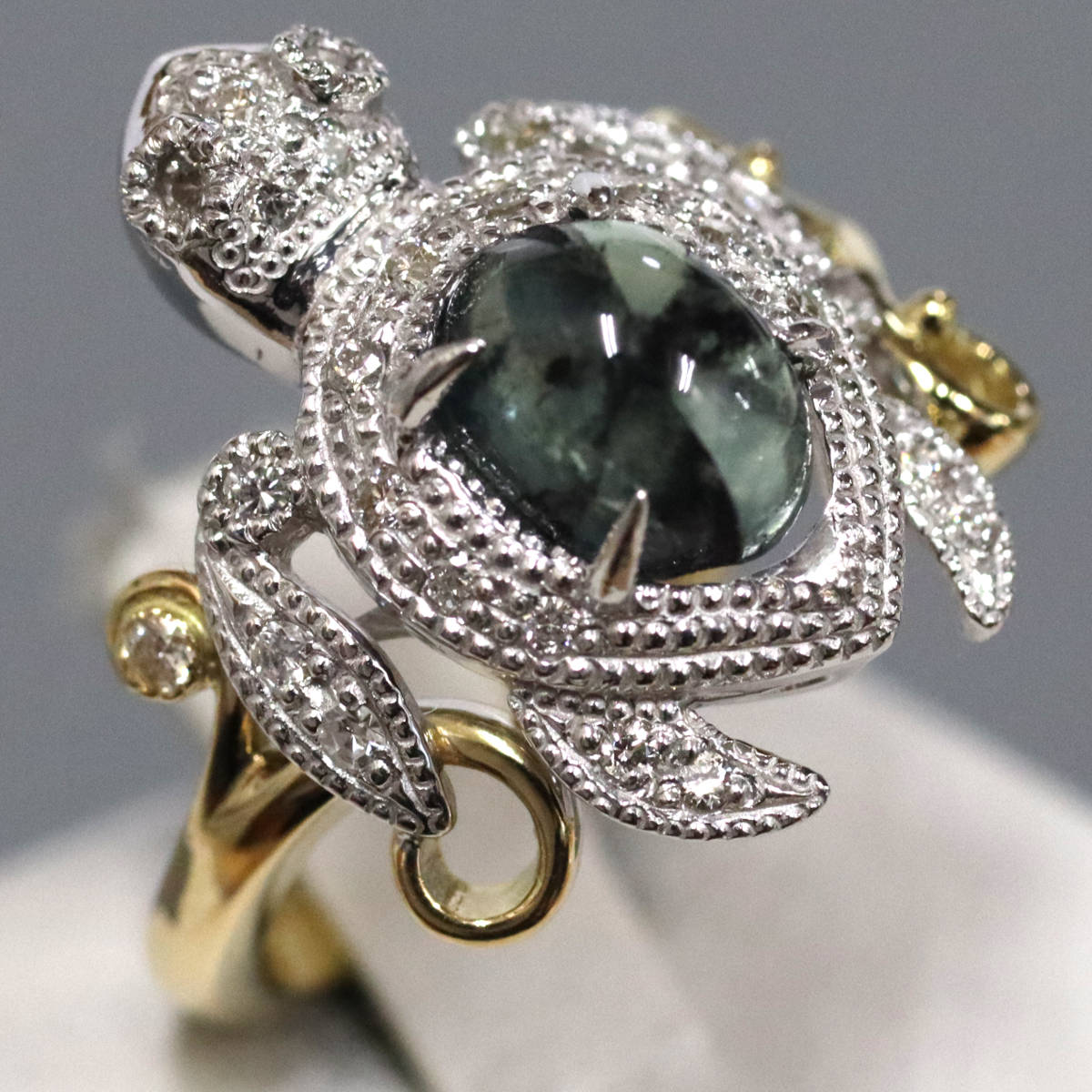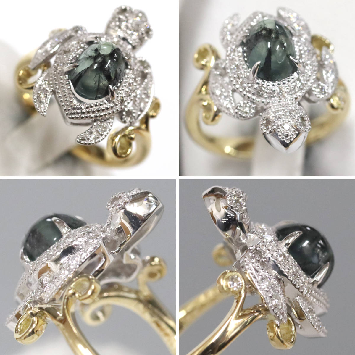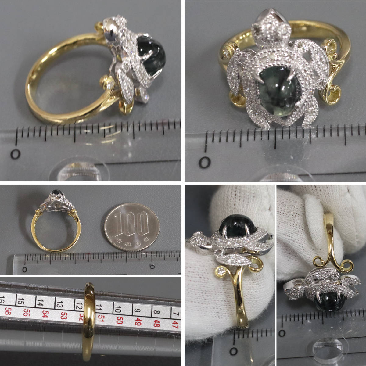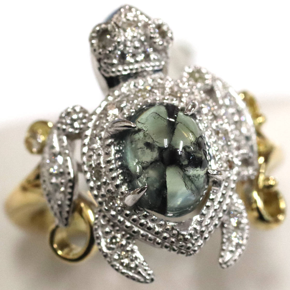 K18YG/WGトラピッチェエメラルドダイヤモンドリング 亀モチーフ E1.29 D0.24 6.5g #11.5 保証書 [25103171]