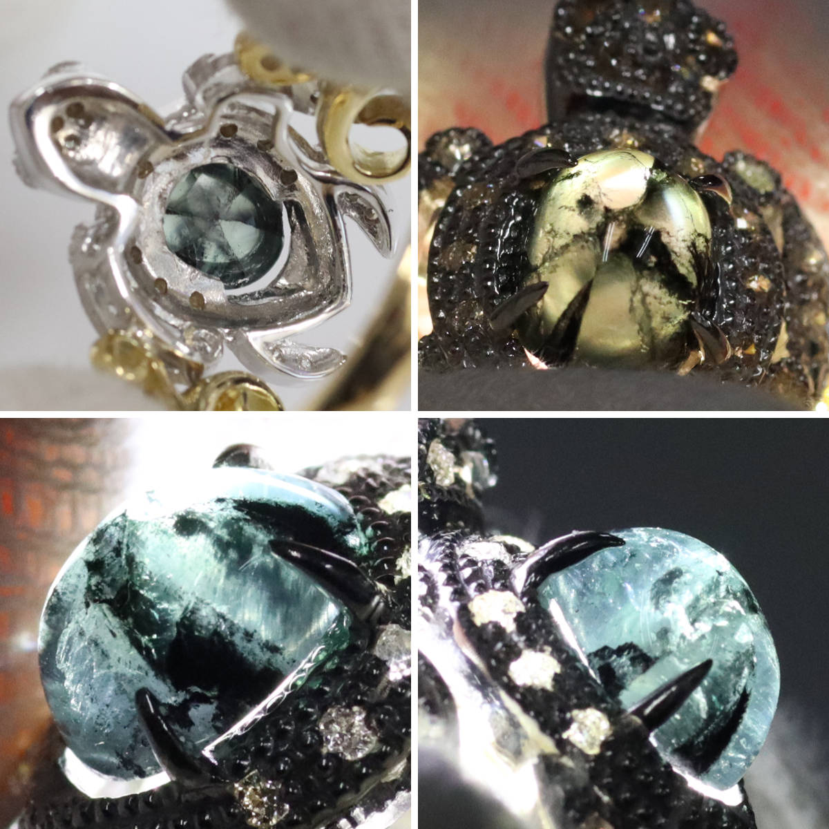 亀がモチーフで甲羅の部分にトラピッチェエメラルドが使用されています。