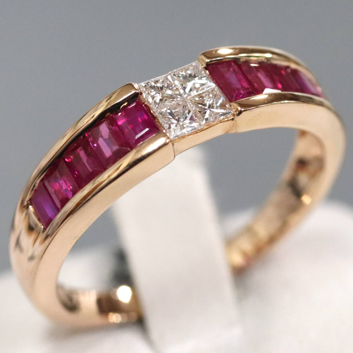 K18PGルビーダイヤモンドリング R0.93 D0.25 4.0g #17 ソーティング [25106054]