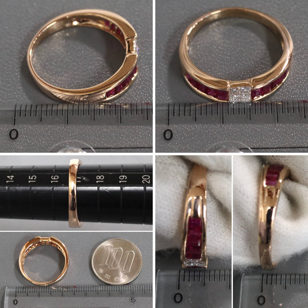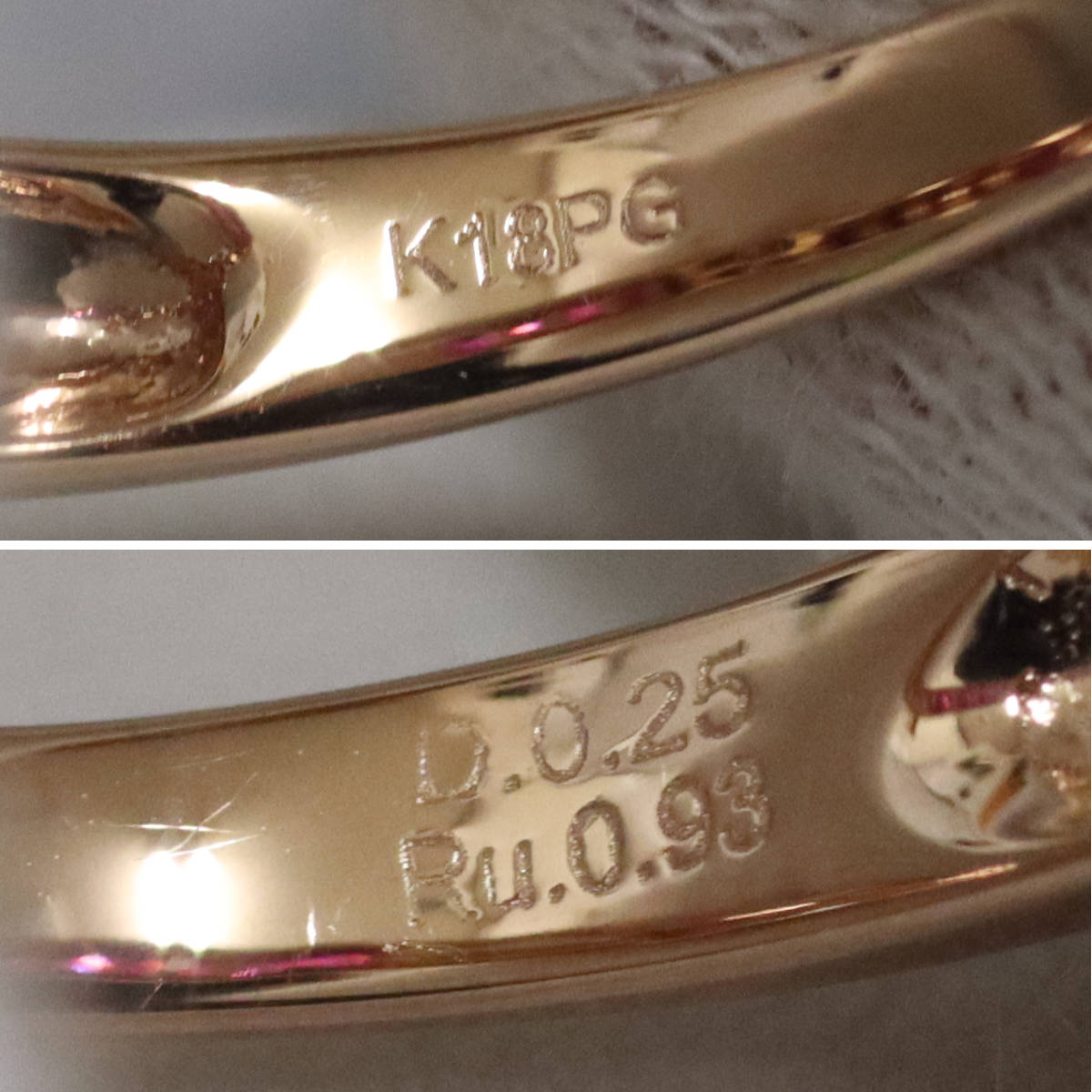 K18PGルビーダイヤモンドリング R0.93 D0.25 4.0g #17 ソーティング