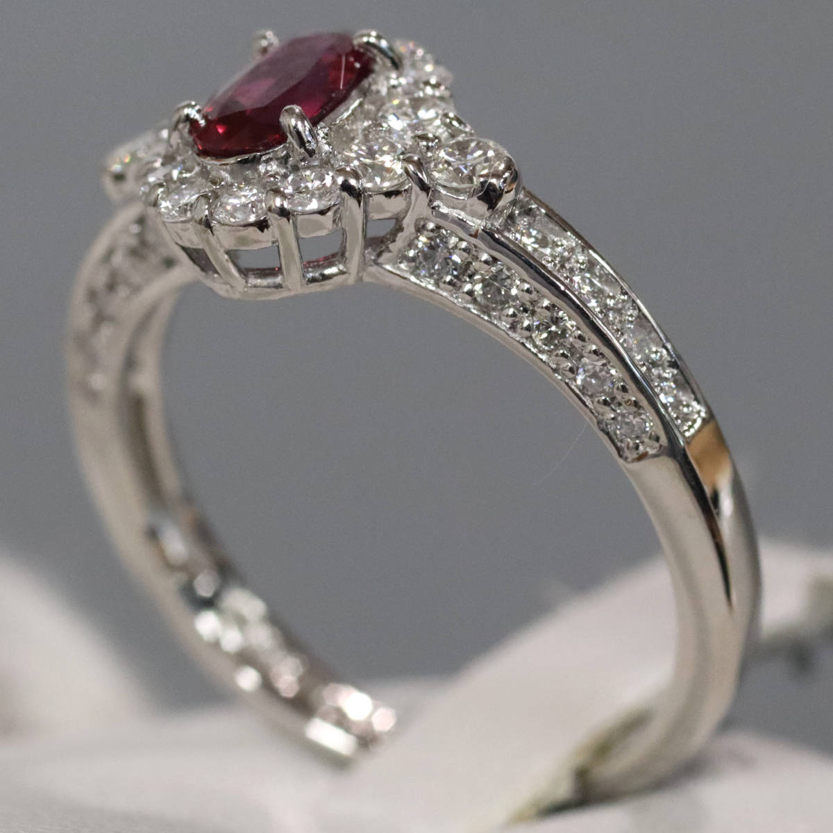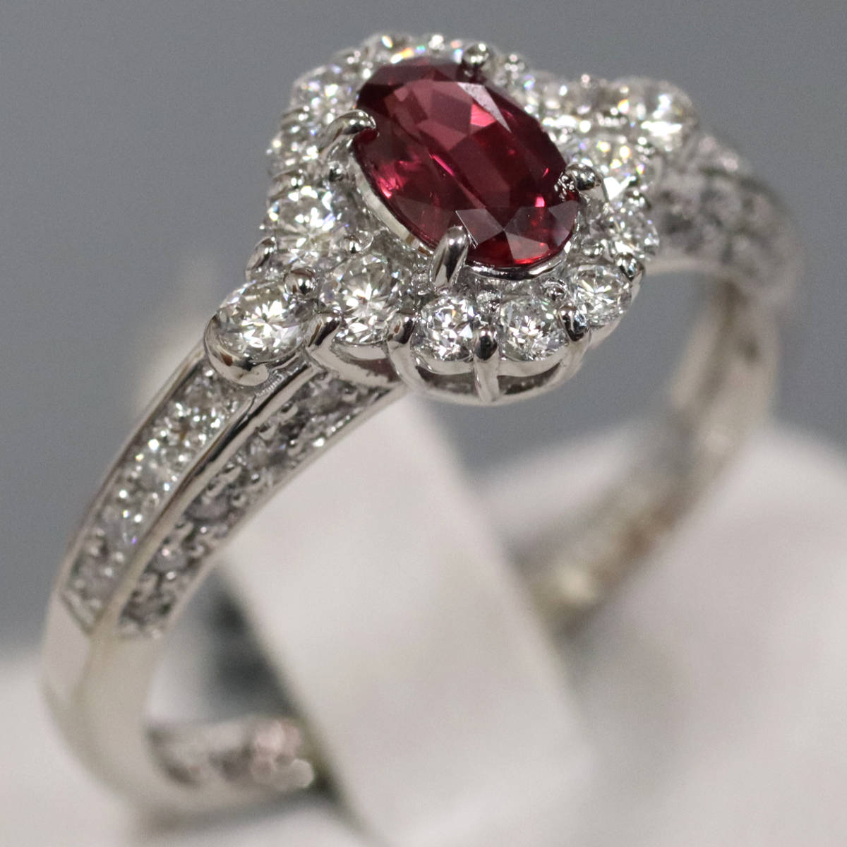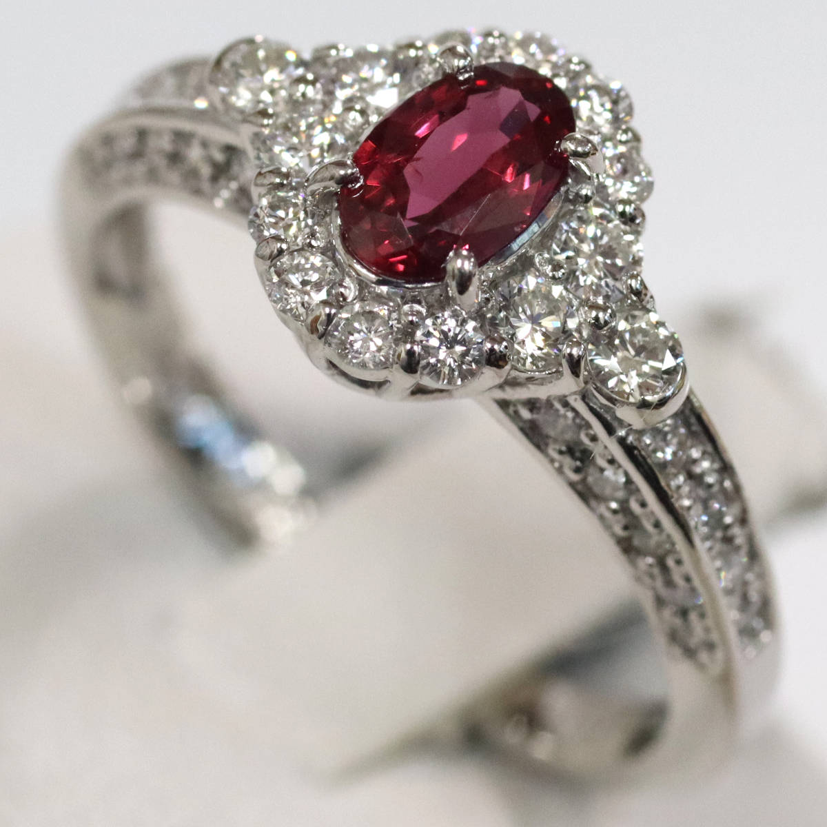 Pt900ダイヤモンド非加熱ピジョンブラッドルビーリングの中古品です。
