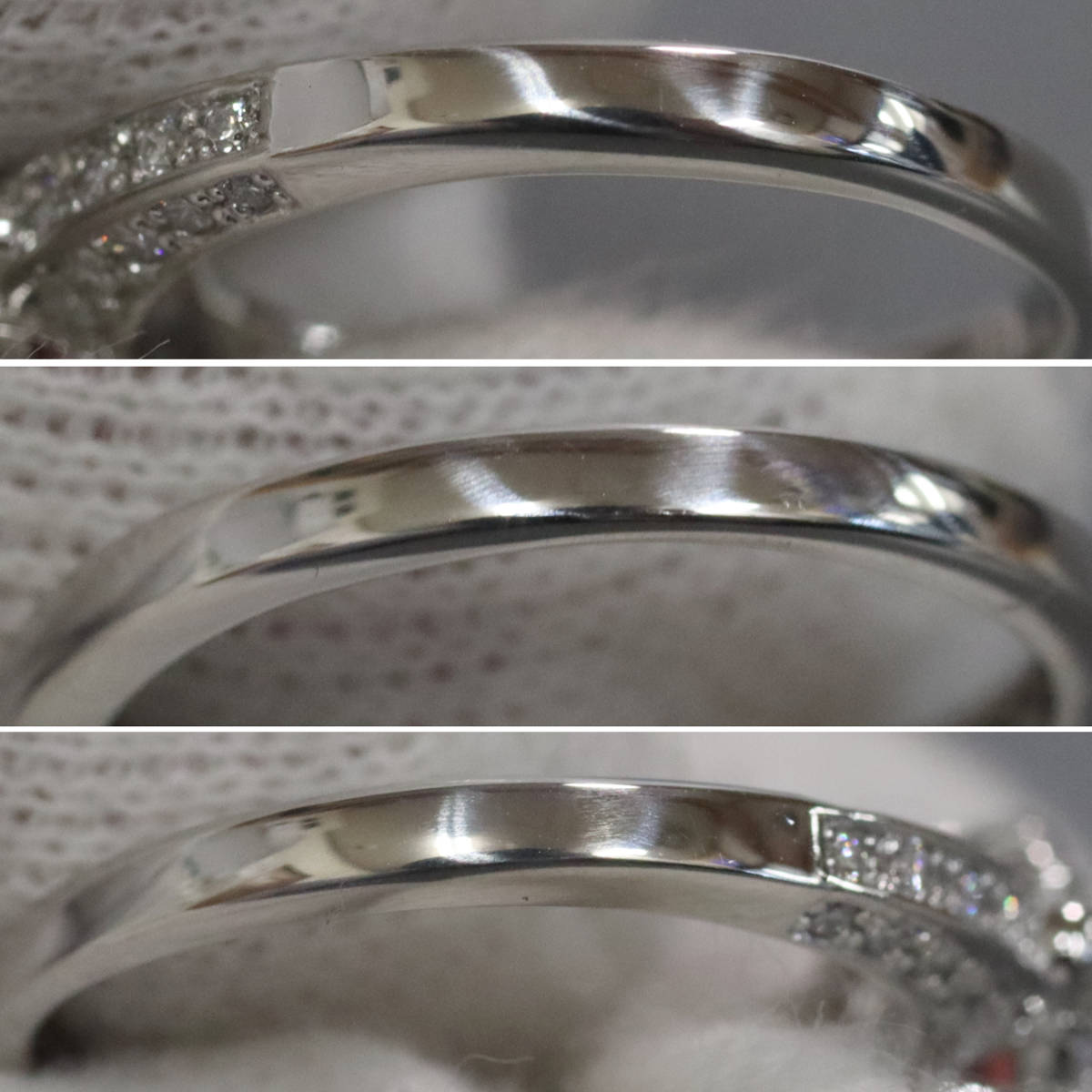 ダイヤモンドは無色に近い色味で、全体的にインクルージョンが少なく、照りよく輝きます。