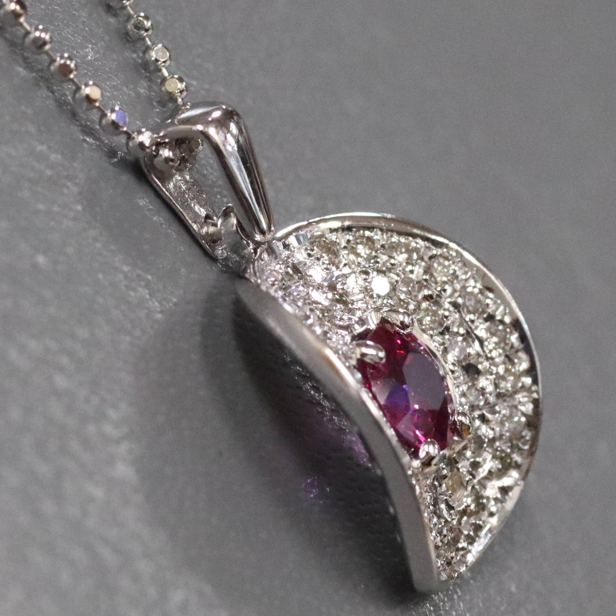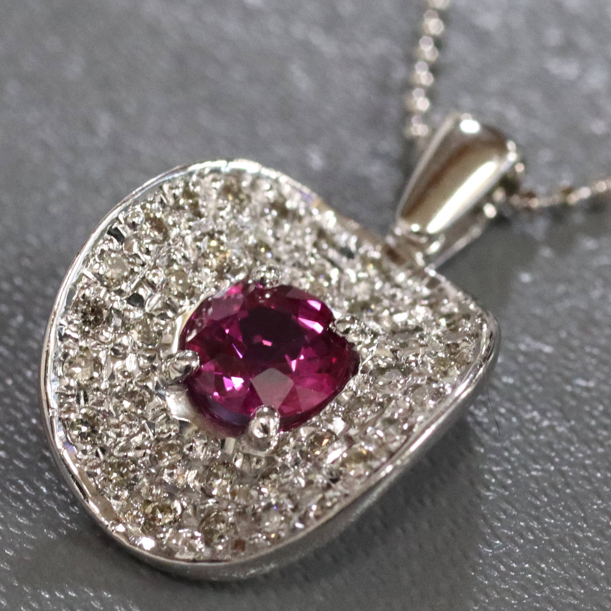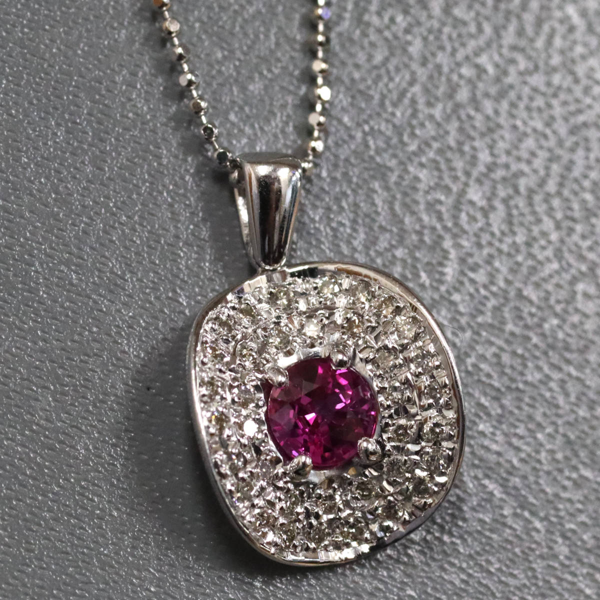 K18WGピンクサファイアダイヤモンドネックレス PS0.58 D0.22 4.5g AJ付45cm