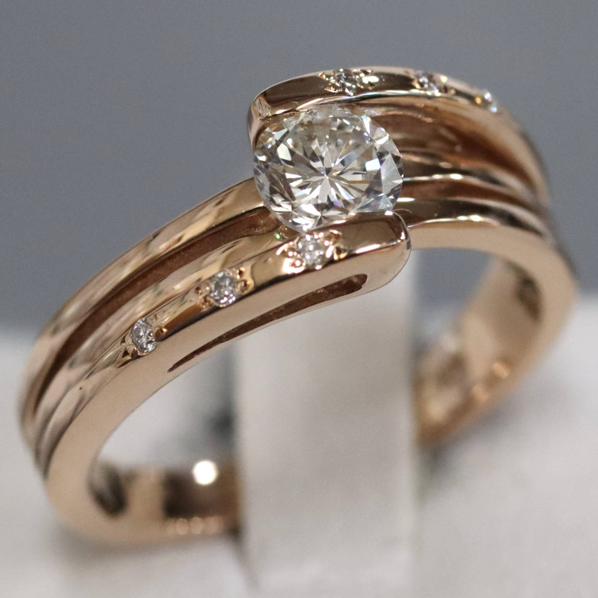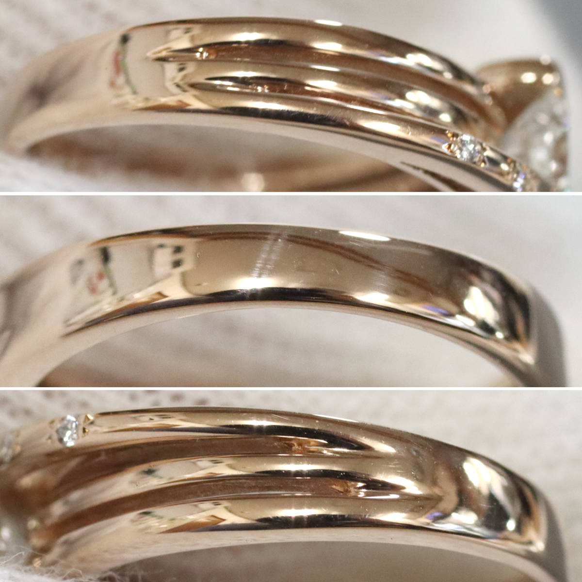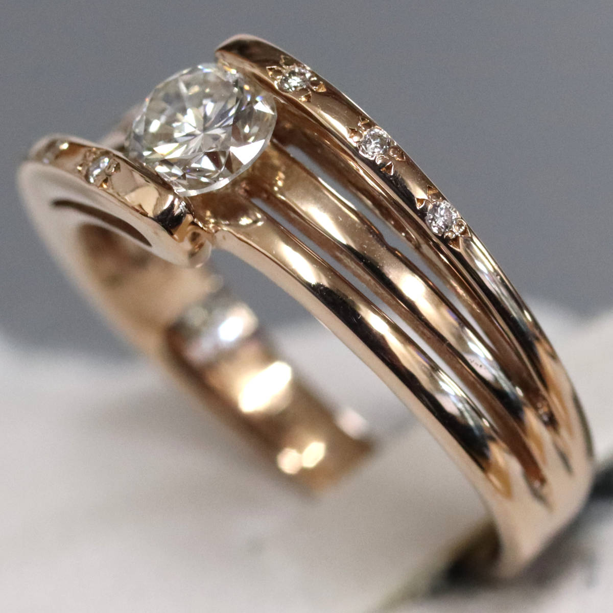 ピンクゴールドのため、当店ではサイズ直しができないお品物です。