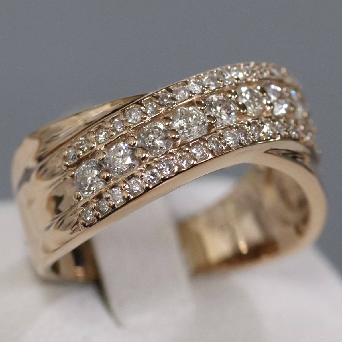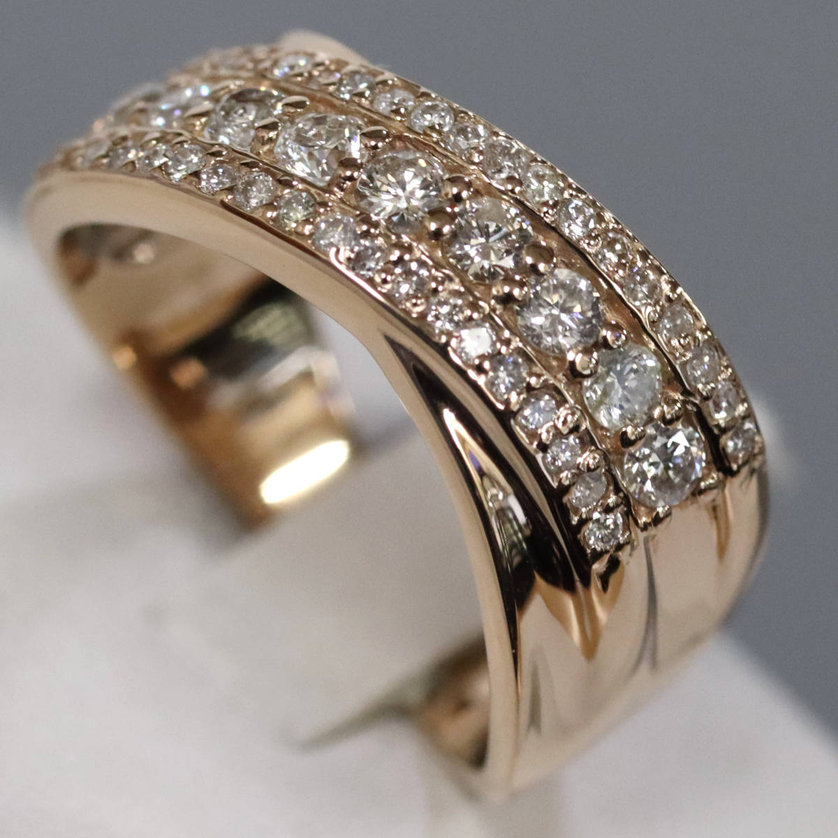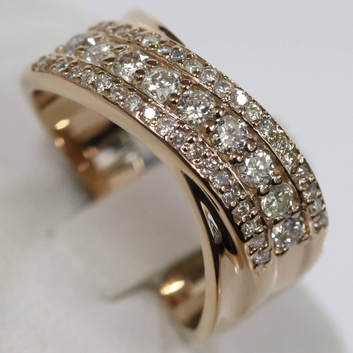 ダイヤモンドが3列にセットされており、中央の列のダイヤモンドは照りよく輝きます。