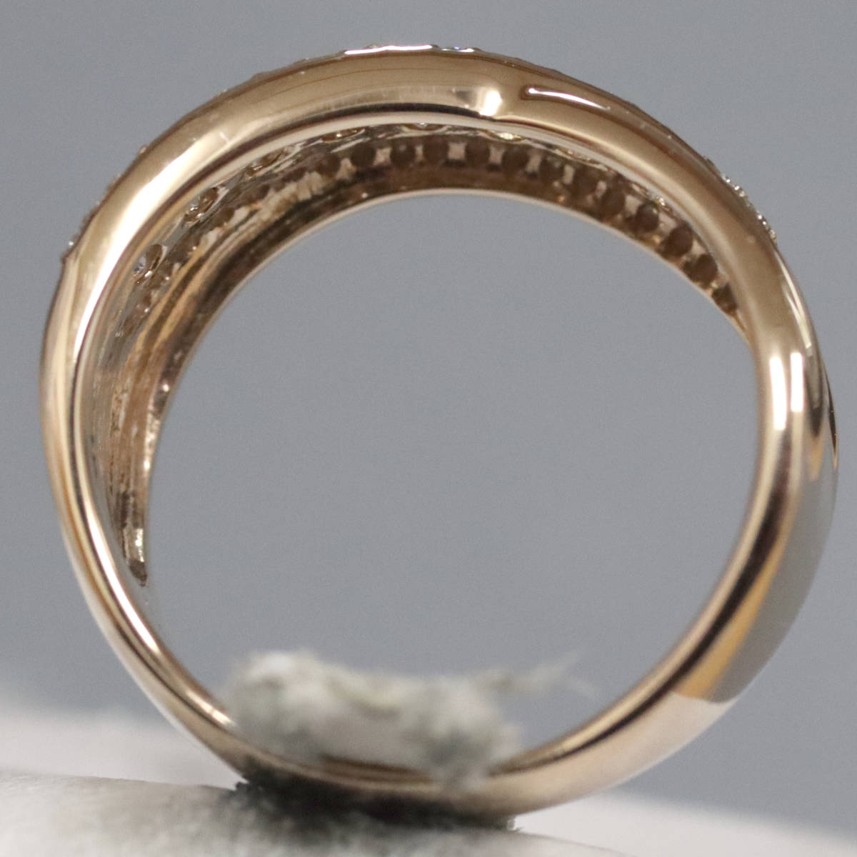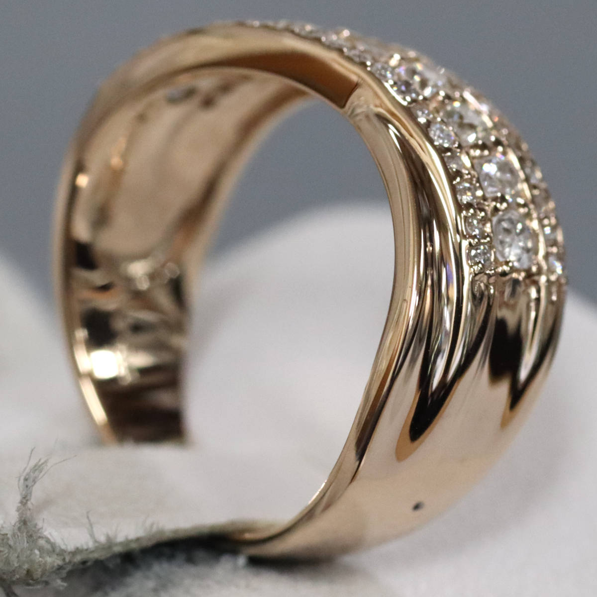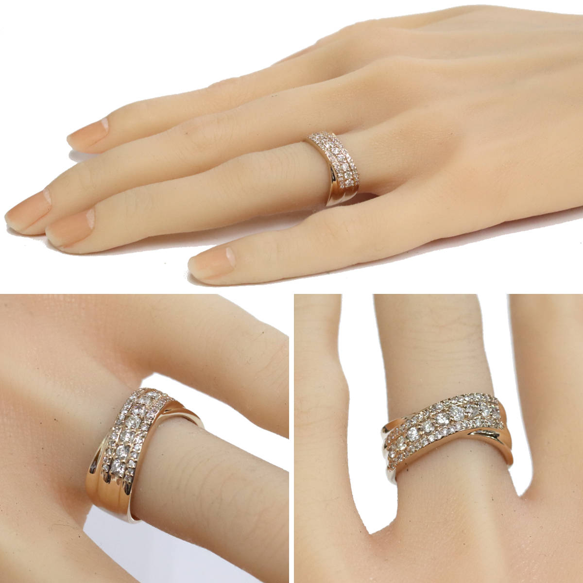 ダイヤモンドが3列にセットされており、中央の列のダイヤモンドは照りよく輝きます。
