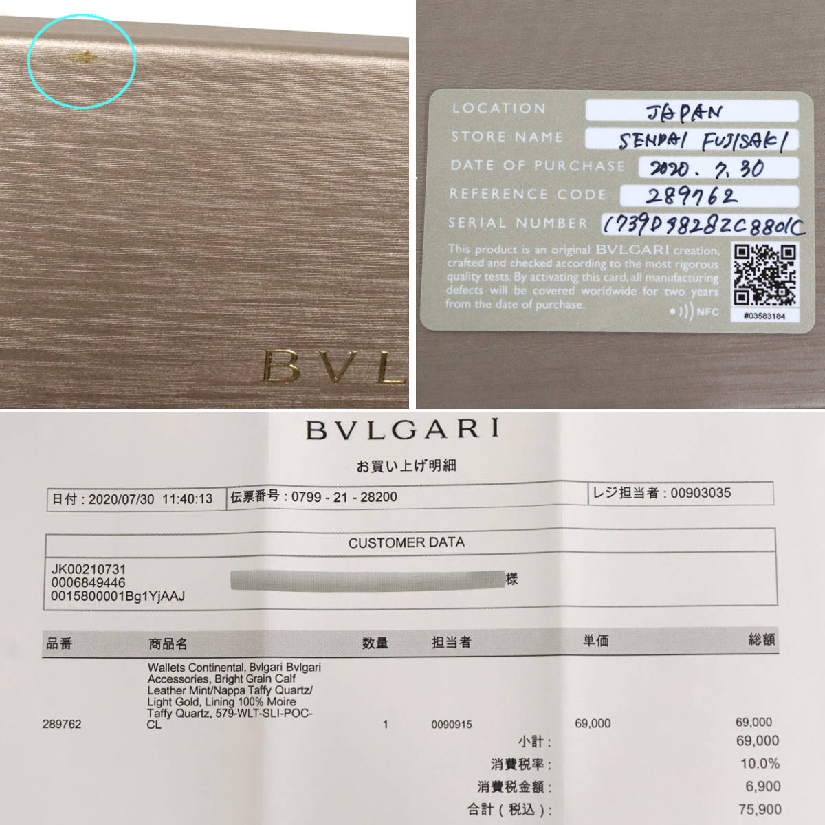購入時のレシート付きで、記載の購入日は2020年7月30日です。