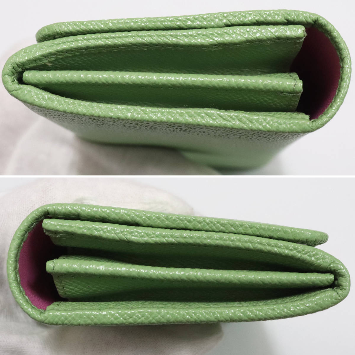 外側はミントグリーン、内側はピンク色です。