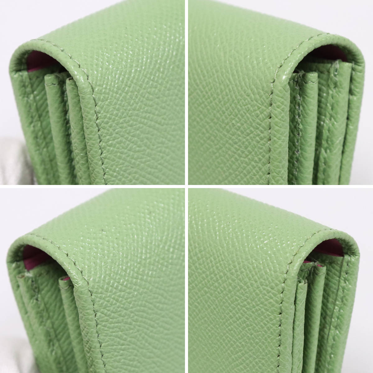 革に金具の押し跡があります。