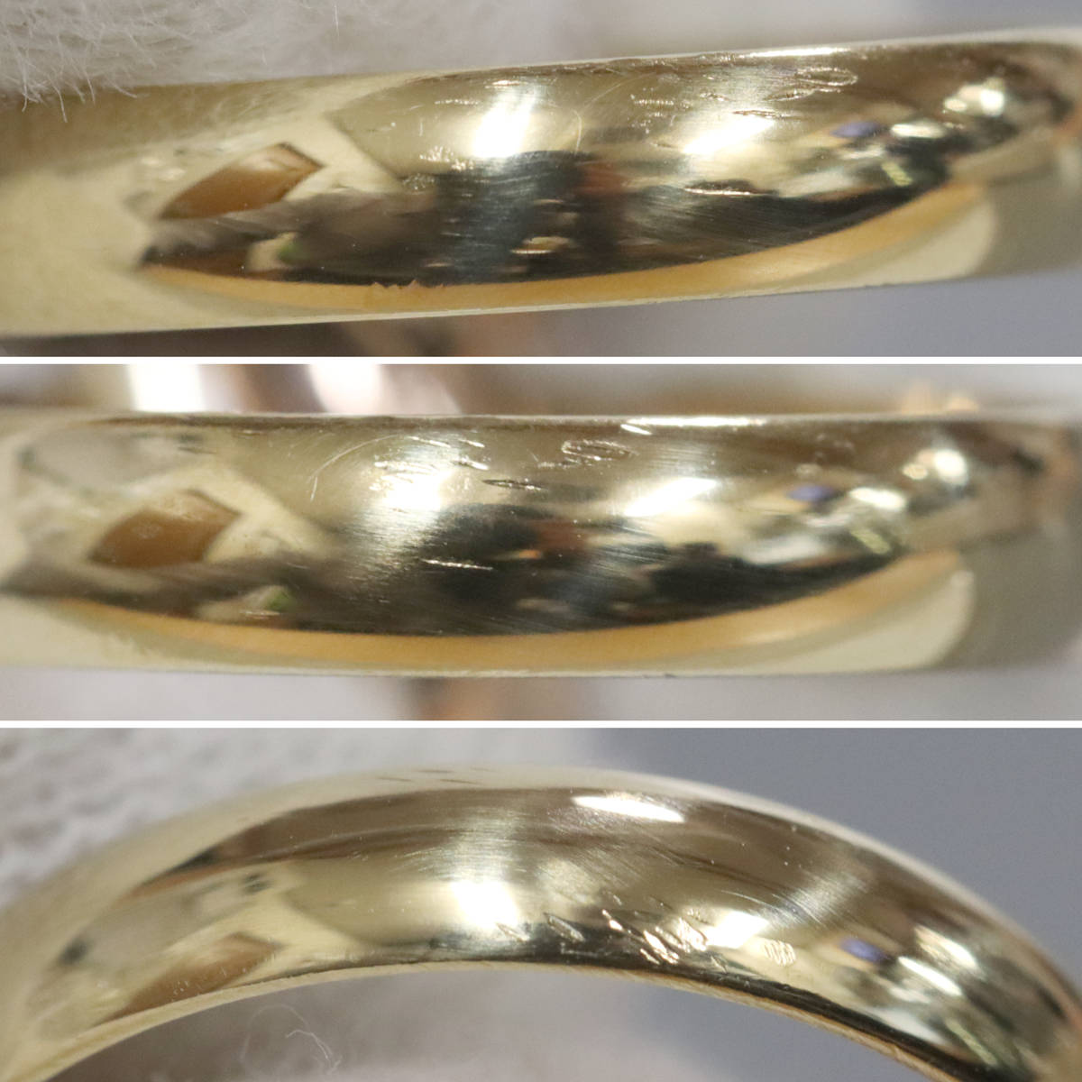 ホワイトゴールドのリングはメッキが薄くなっており、黄色がかって見えます。