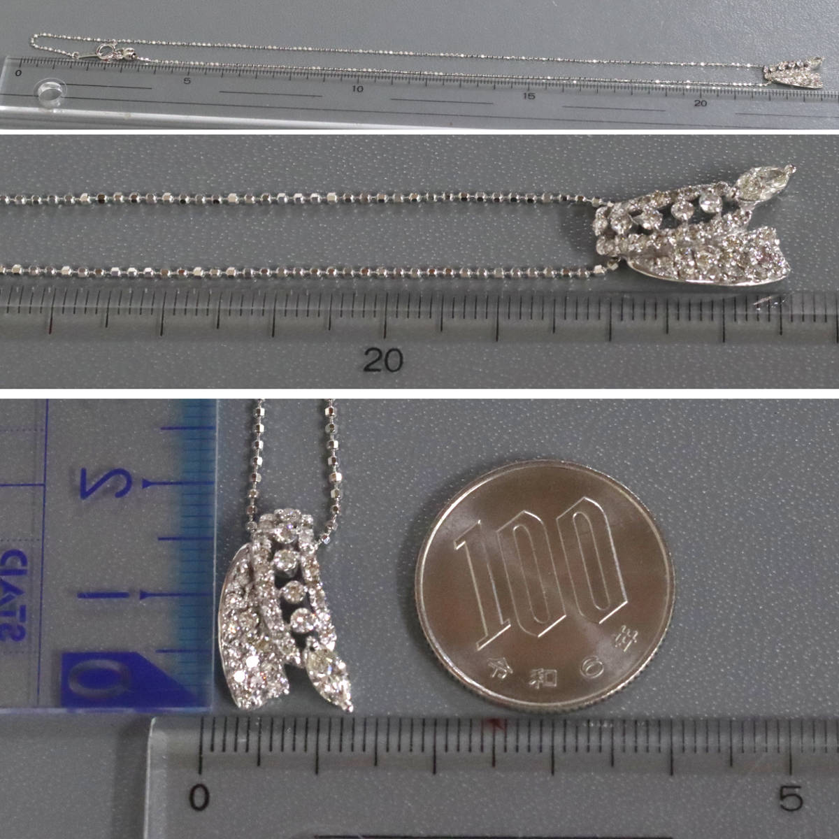 K18WGダイヤモンドペンダント D0.80 5.2g AJ付44cm