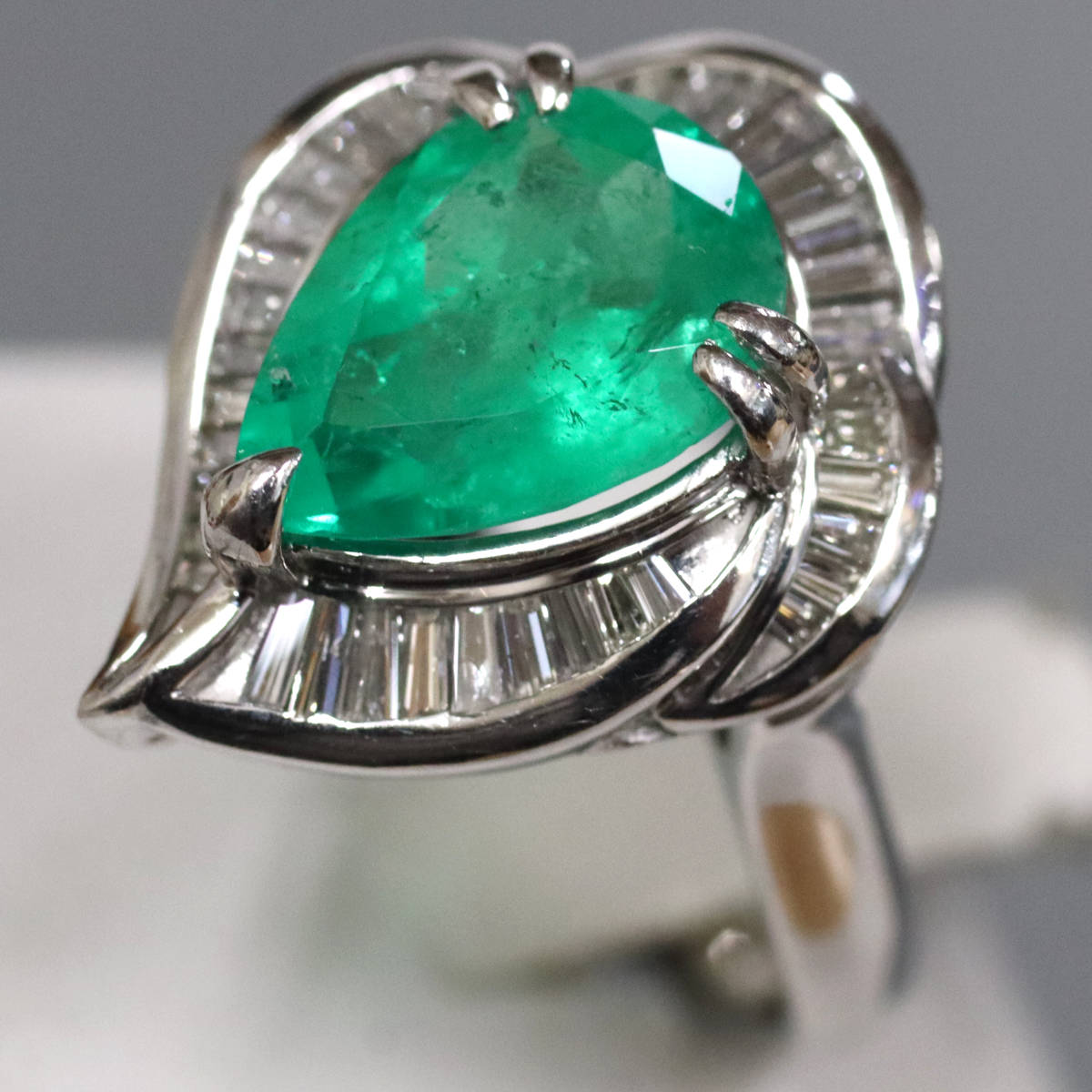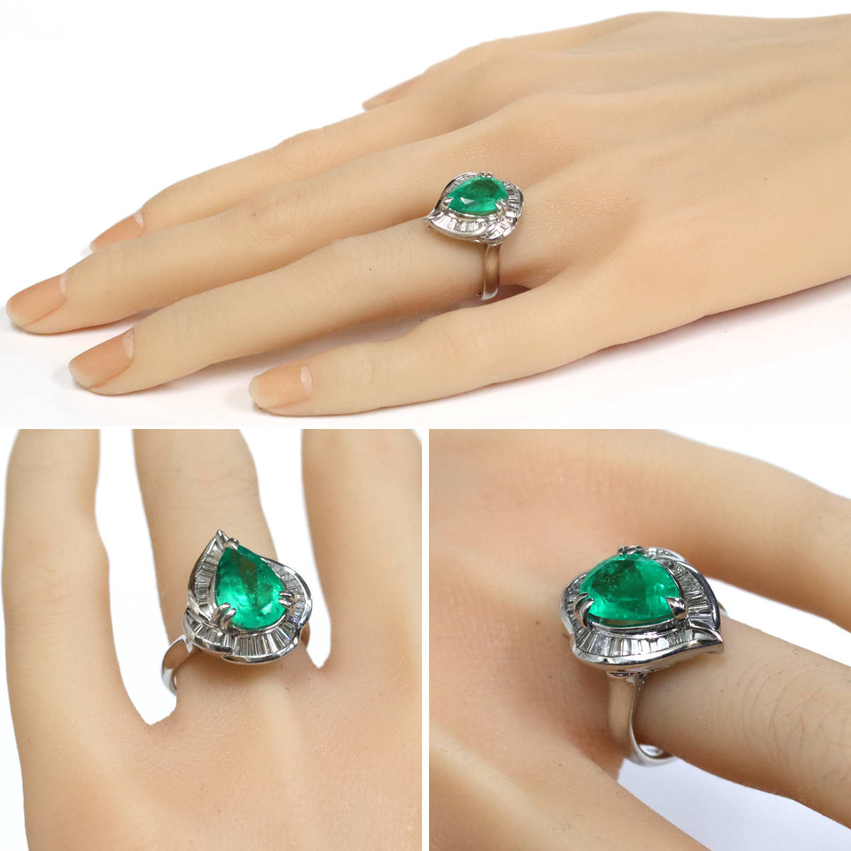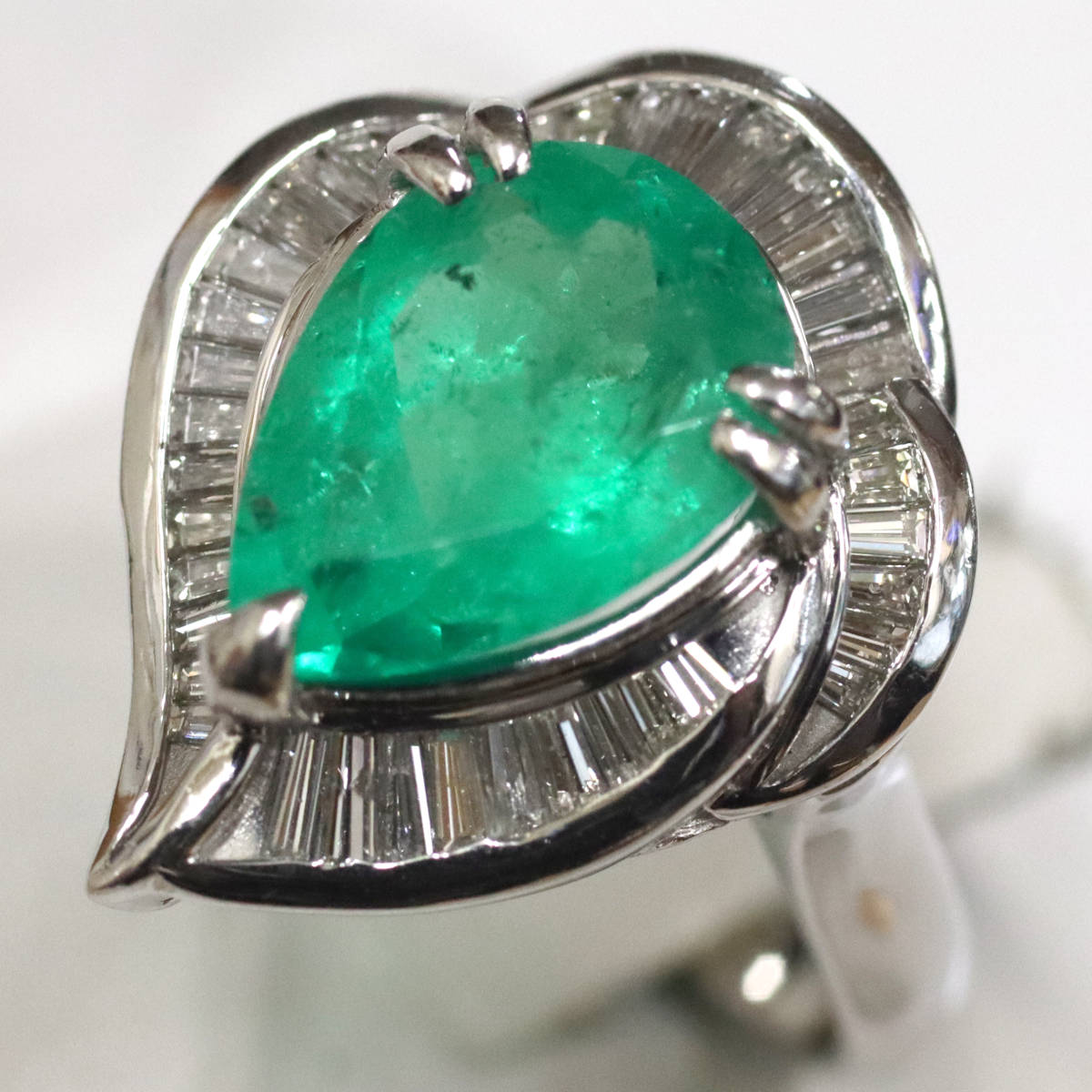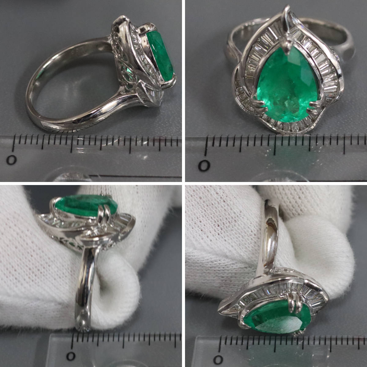 Pt900エメラルドダイヤモンドリング E2.96 D0.64 10.6g #12.5