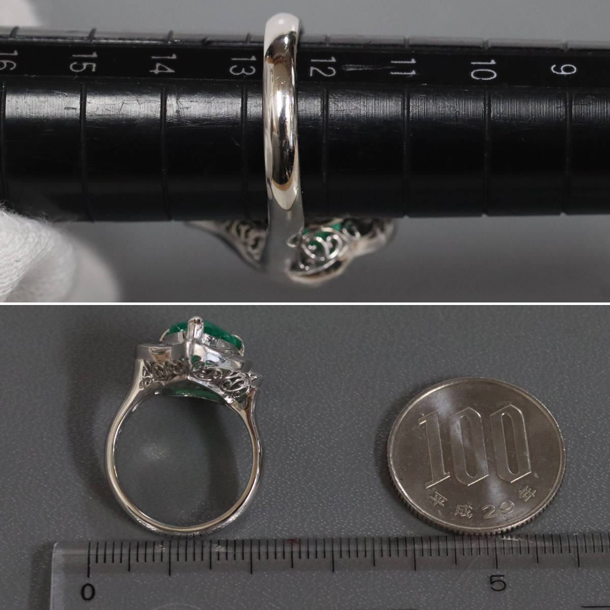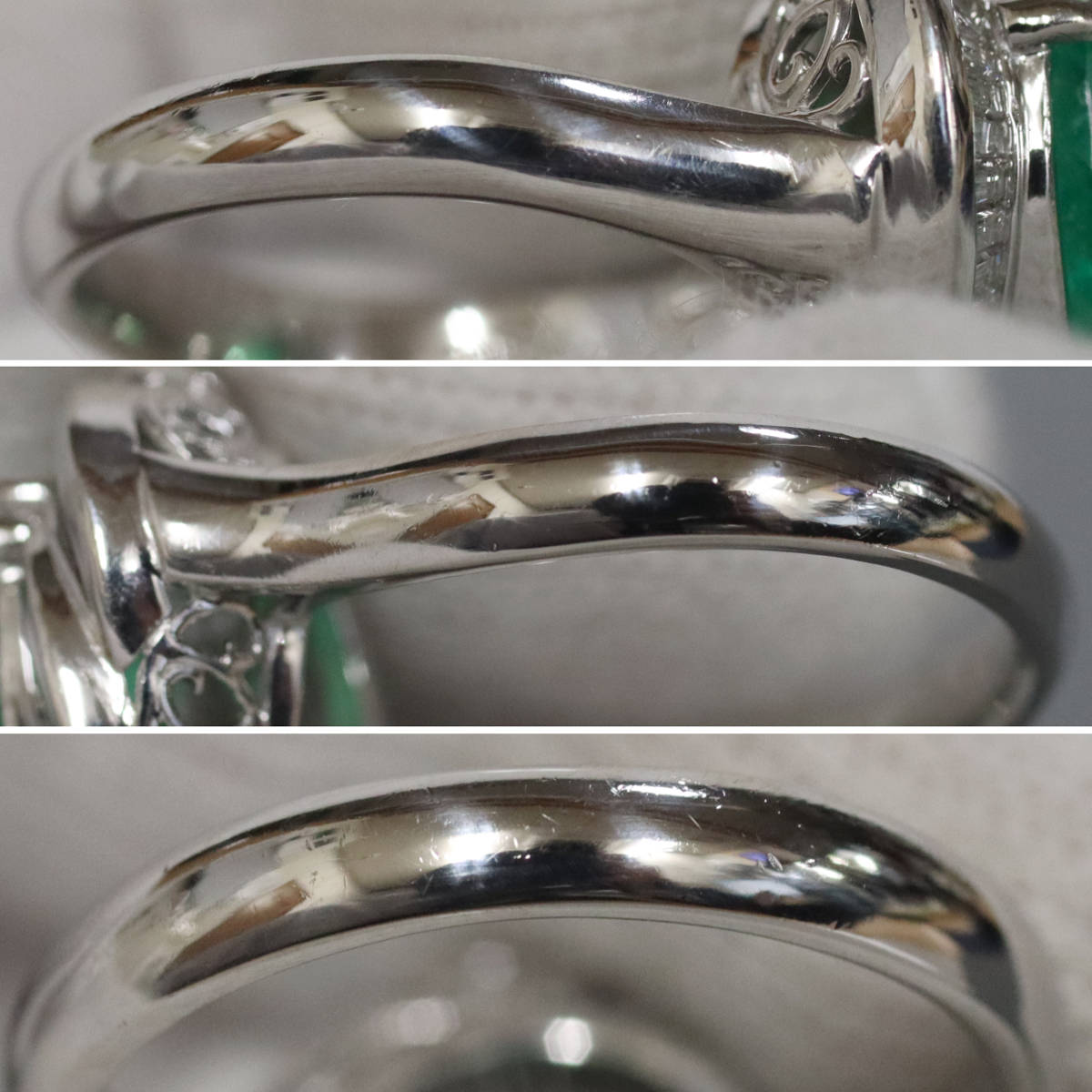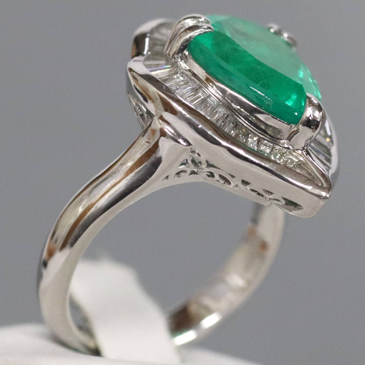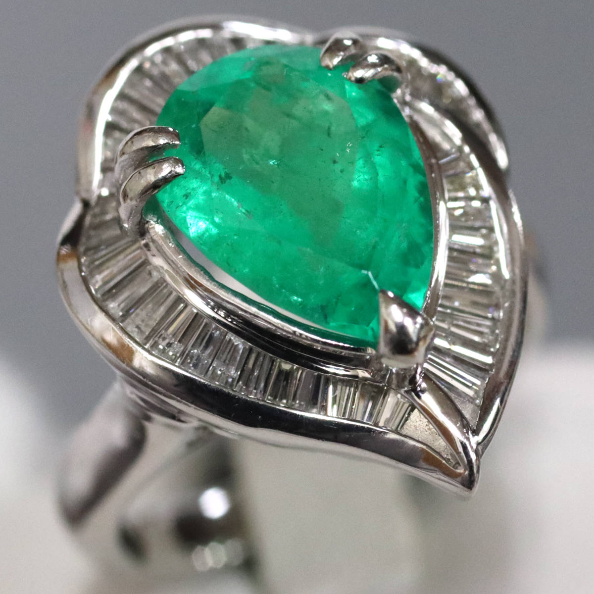 Pt900エメラルドダイヤモンドリング E2.96 D0.64 10.6g #12.5