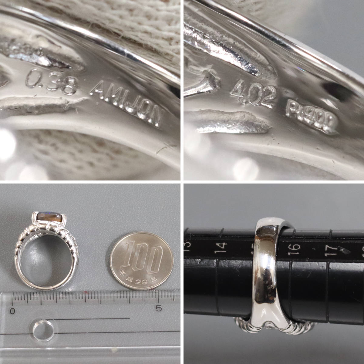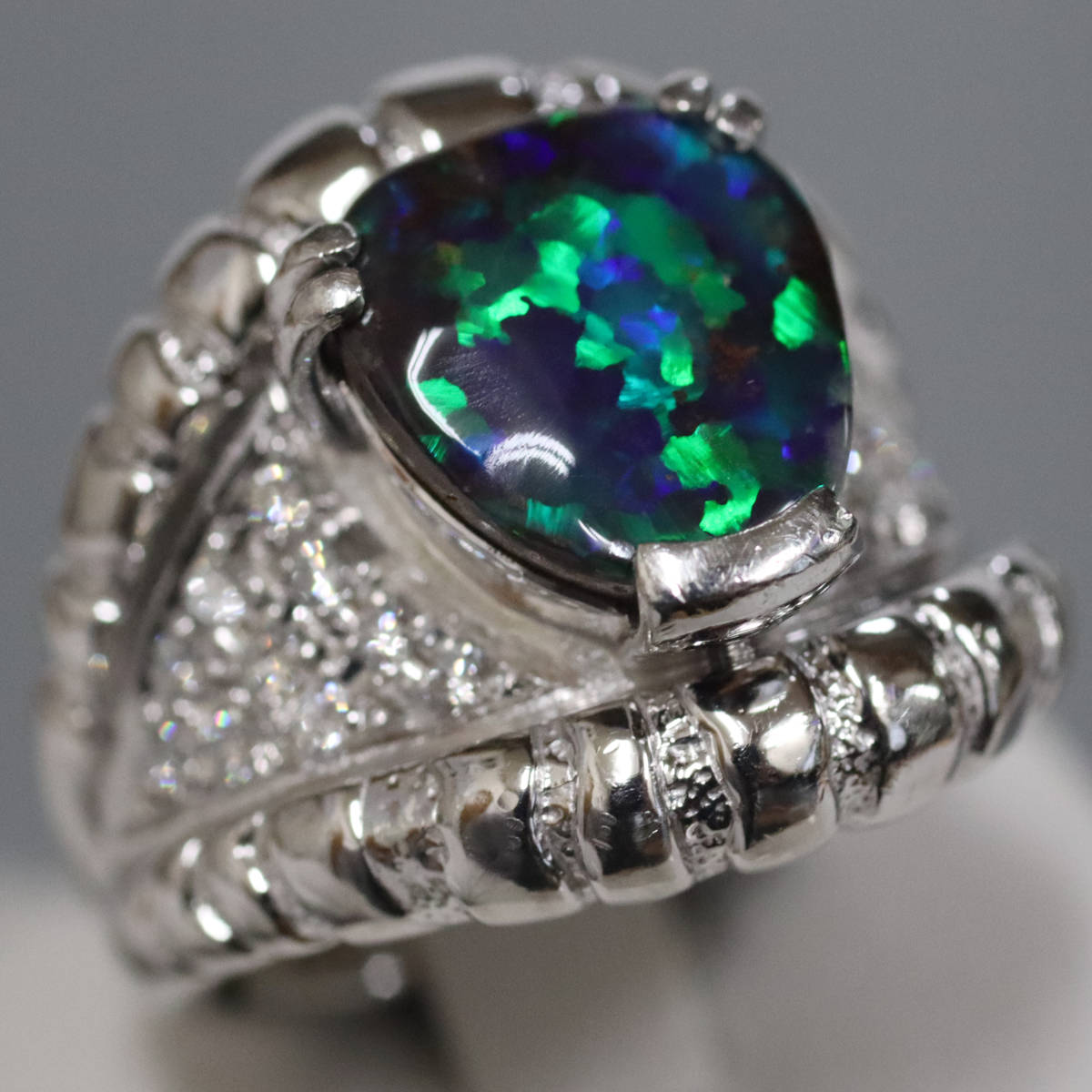 Pt900ブラックオパールダイヤモンドリング BkO4.02 D0.38 22.7g #16