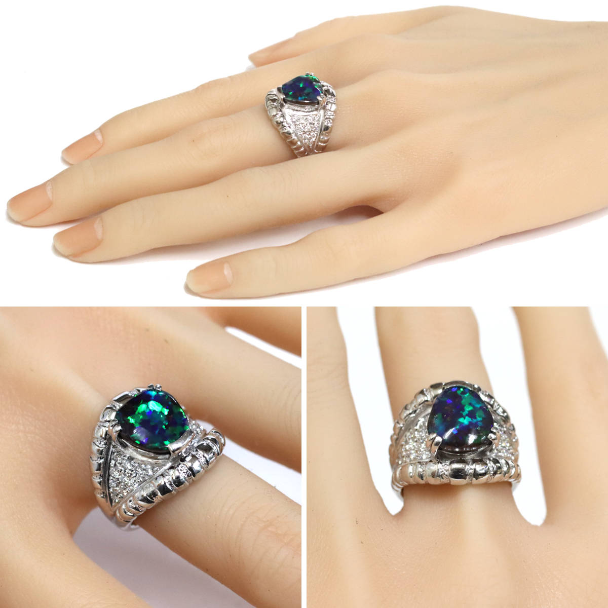 | 素材 | Pt900,ブラックオパール,ダイヤモンド |