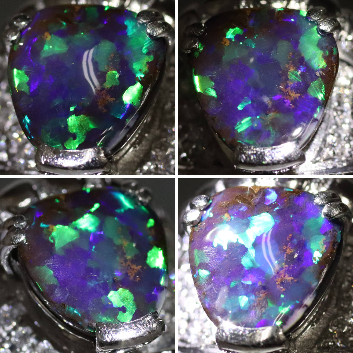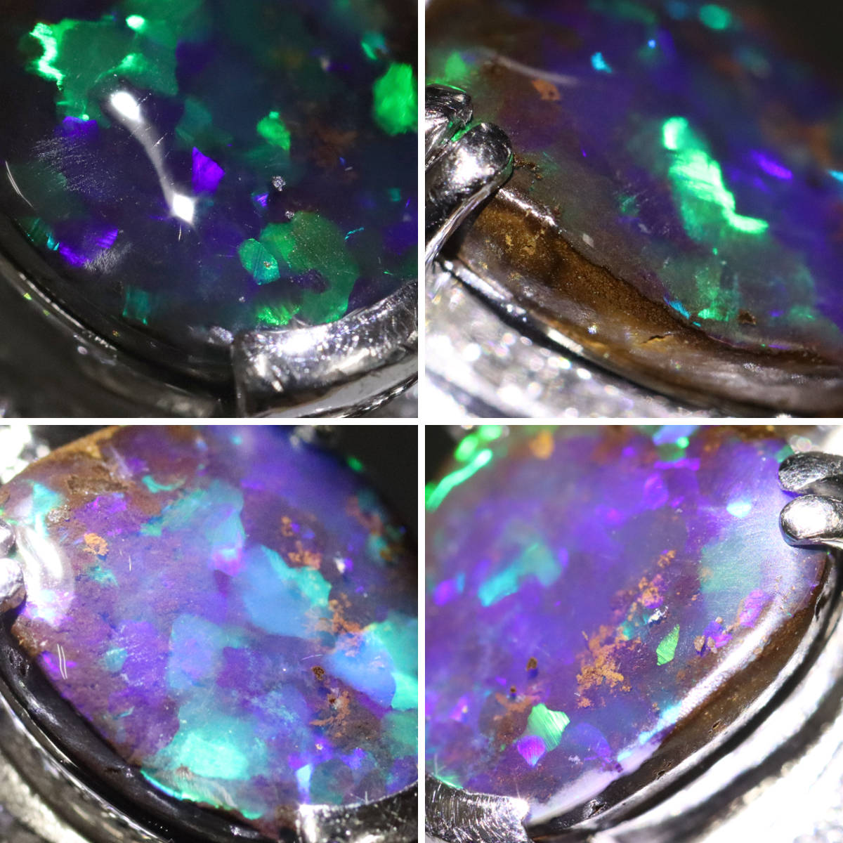 オパールの遊色は緑と青で部分的に遊色がでない箇所があります。