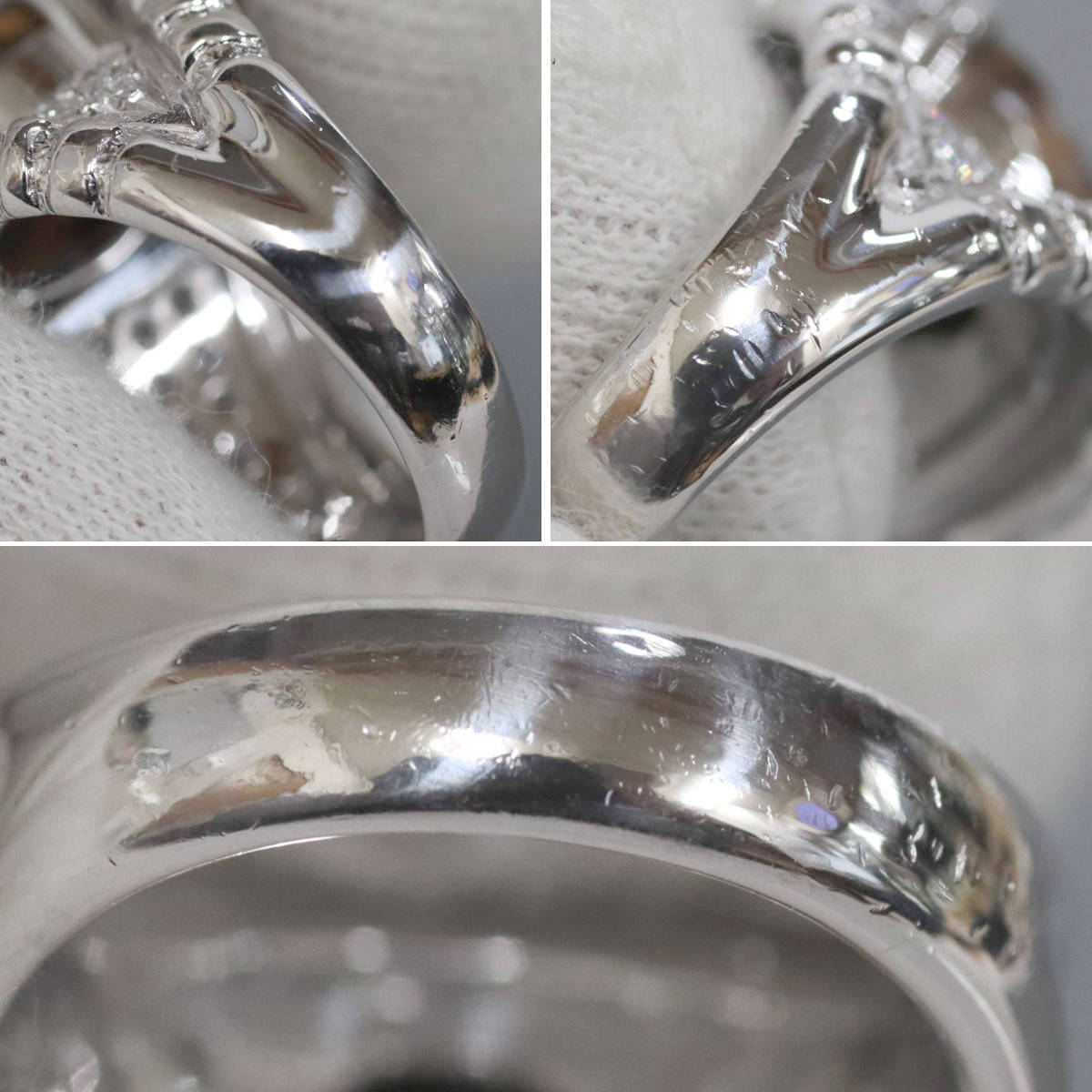 ダイヤモンドは無色に近い色味で、インクルージョンが少なく、照りがあります。
