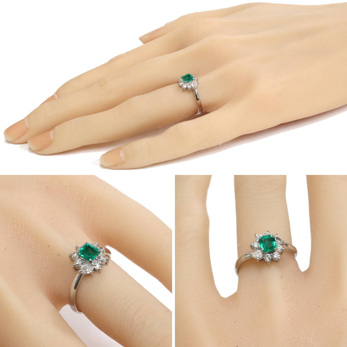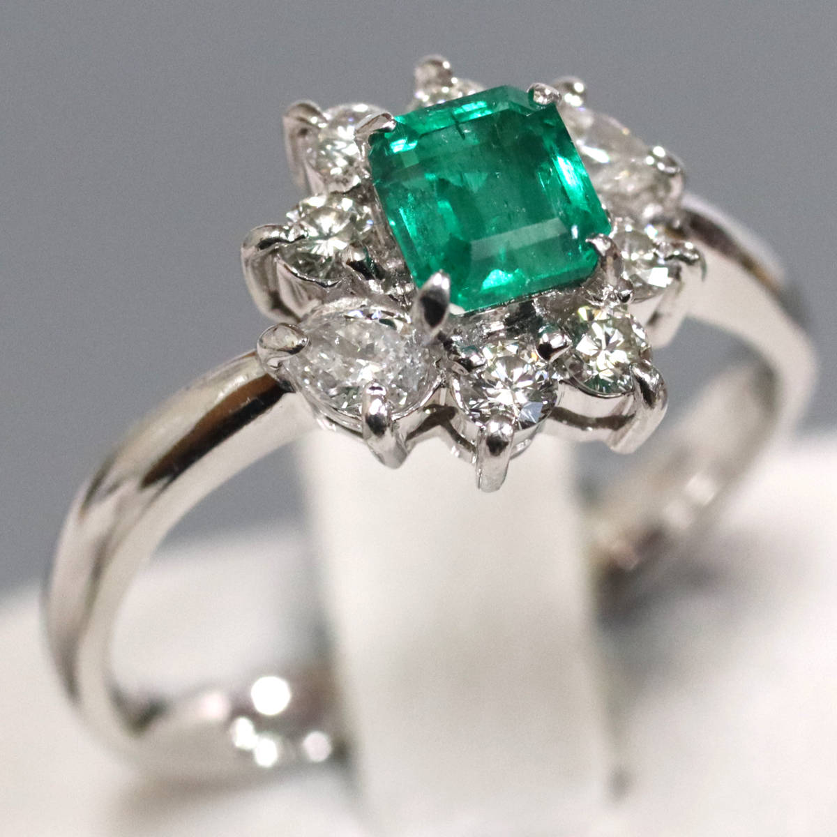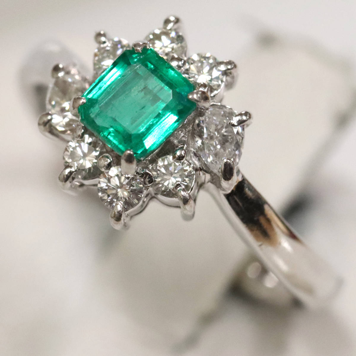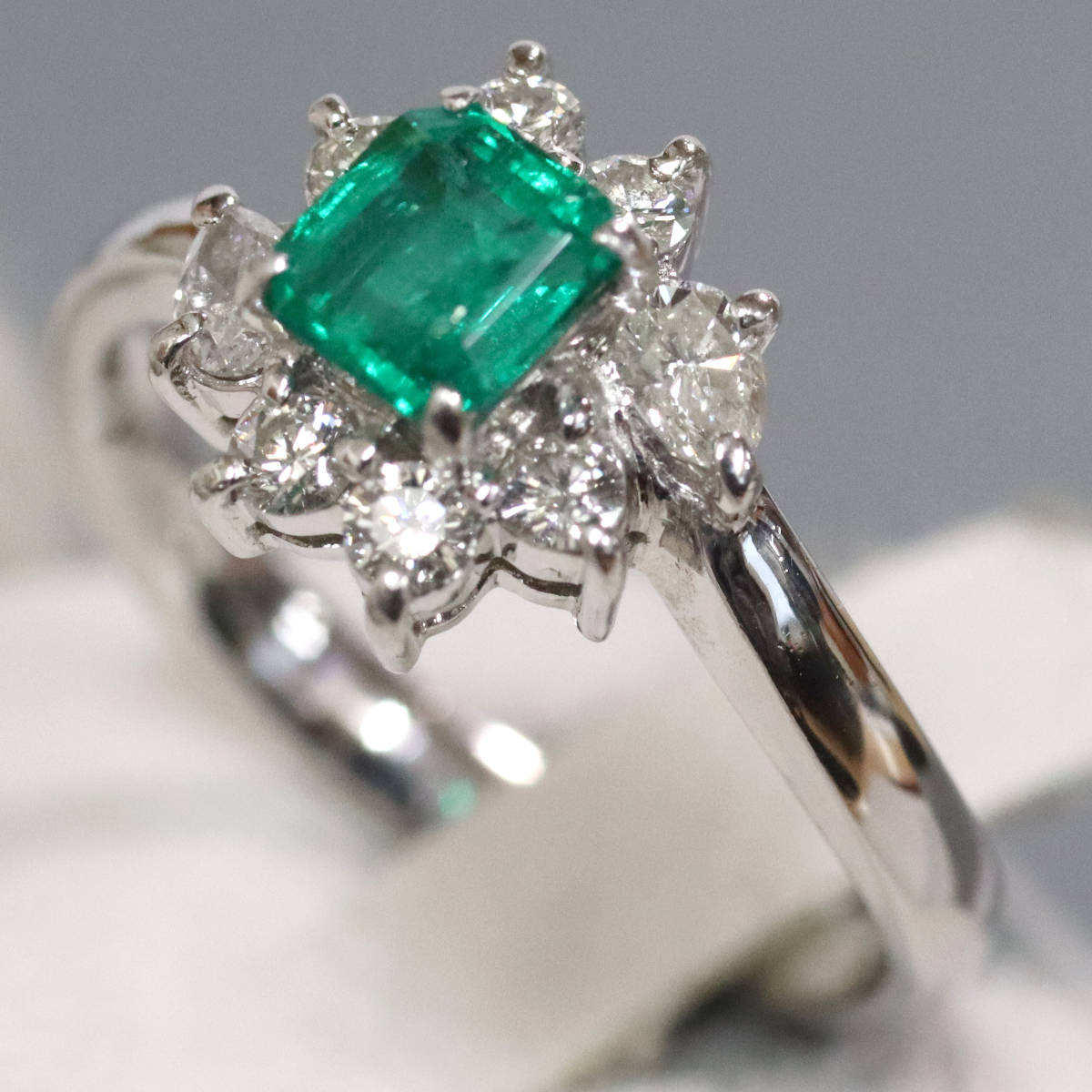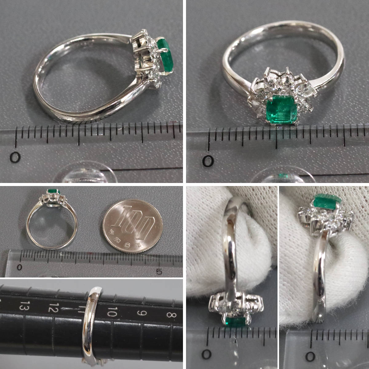 Pt900エメラルドダイヤモンドリング E0.48 D0.36 4.9g #10.5