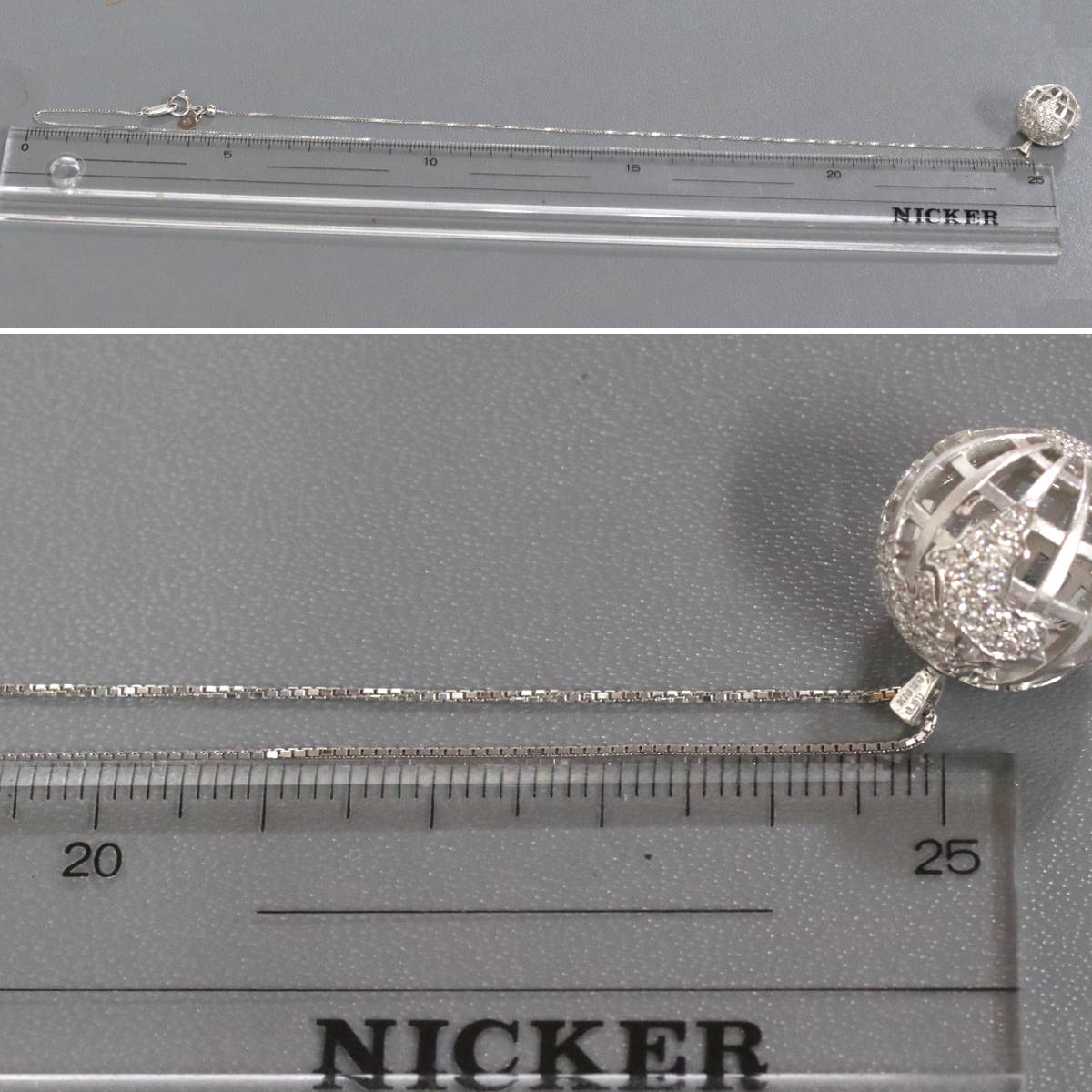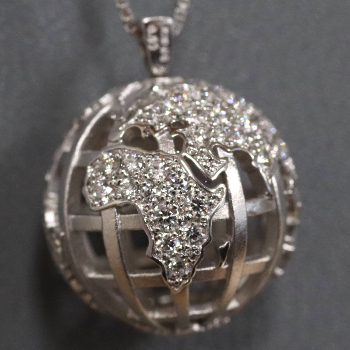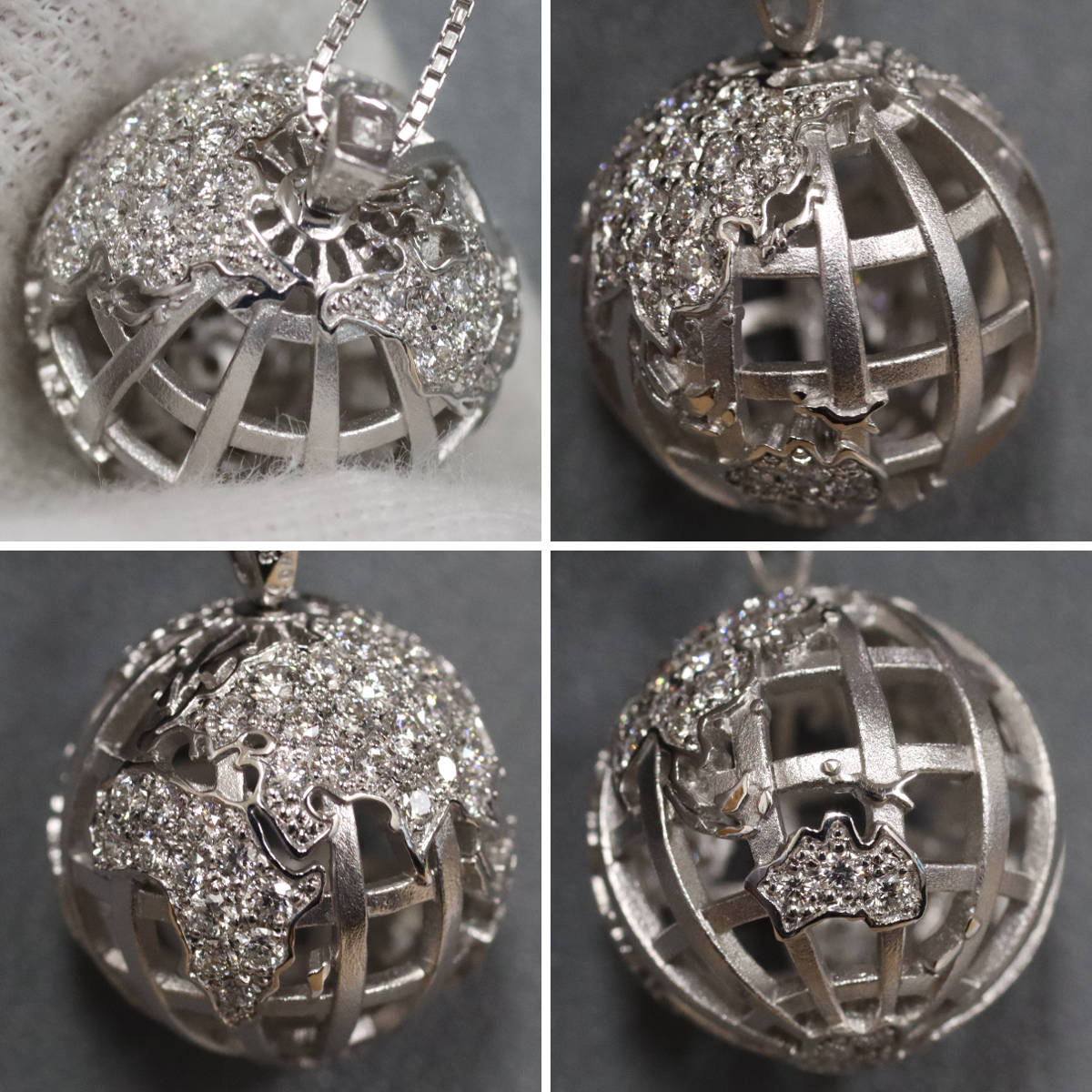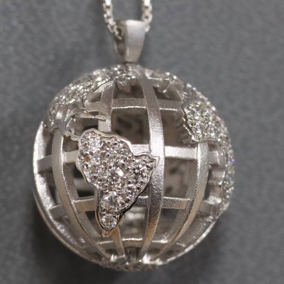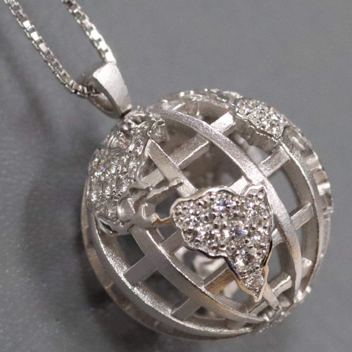 K18WGダイヤモンドネックレス 地球儀モチーフ D0.55 8.2g AJ付50cm