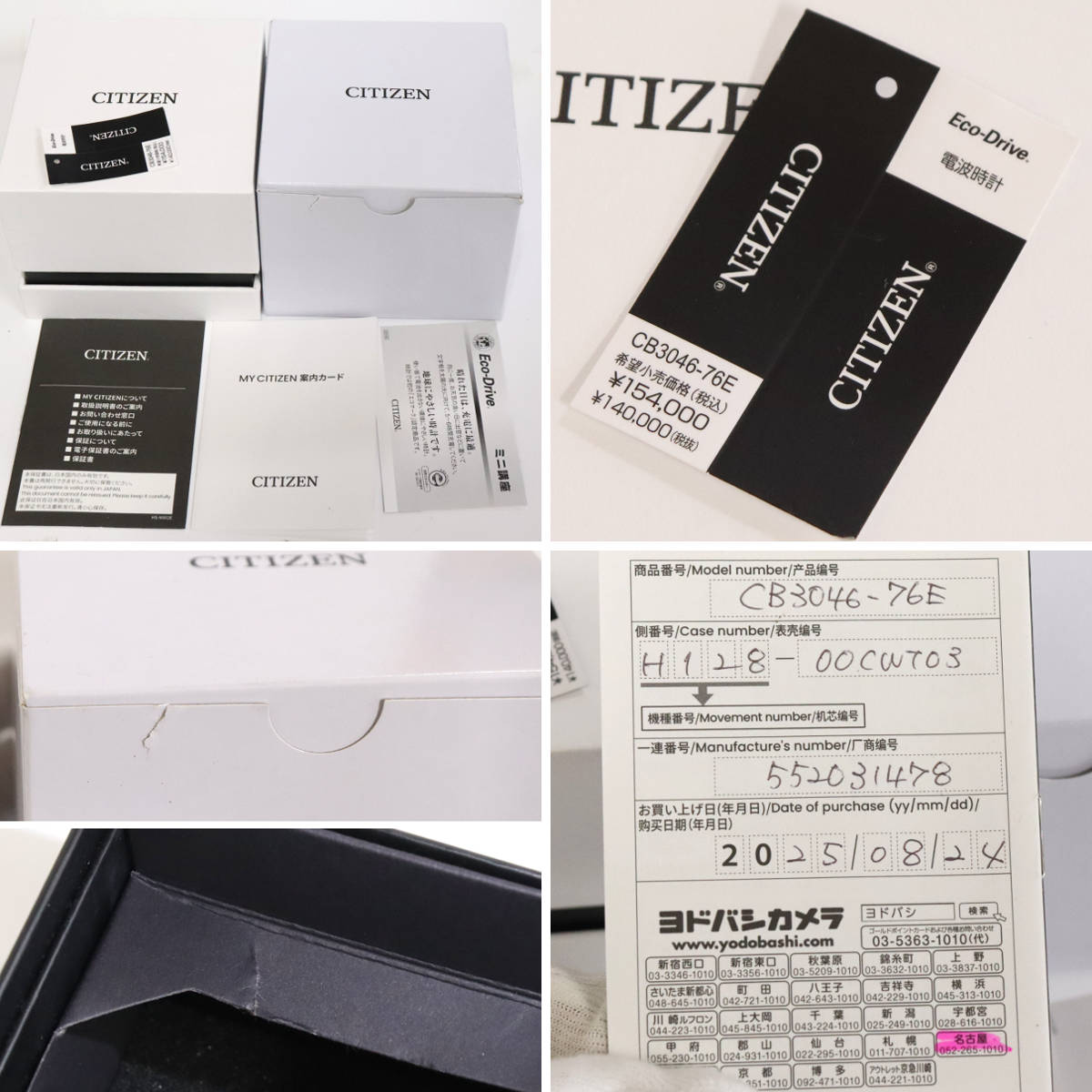 保証書が付属し、記載の購入日は2025年8月24日です。