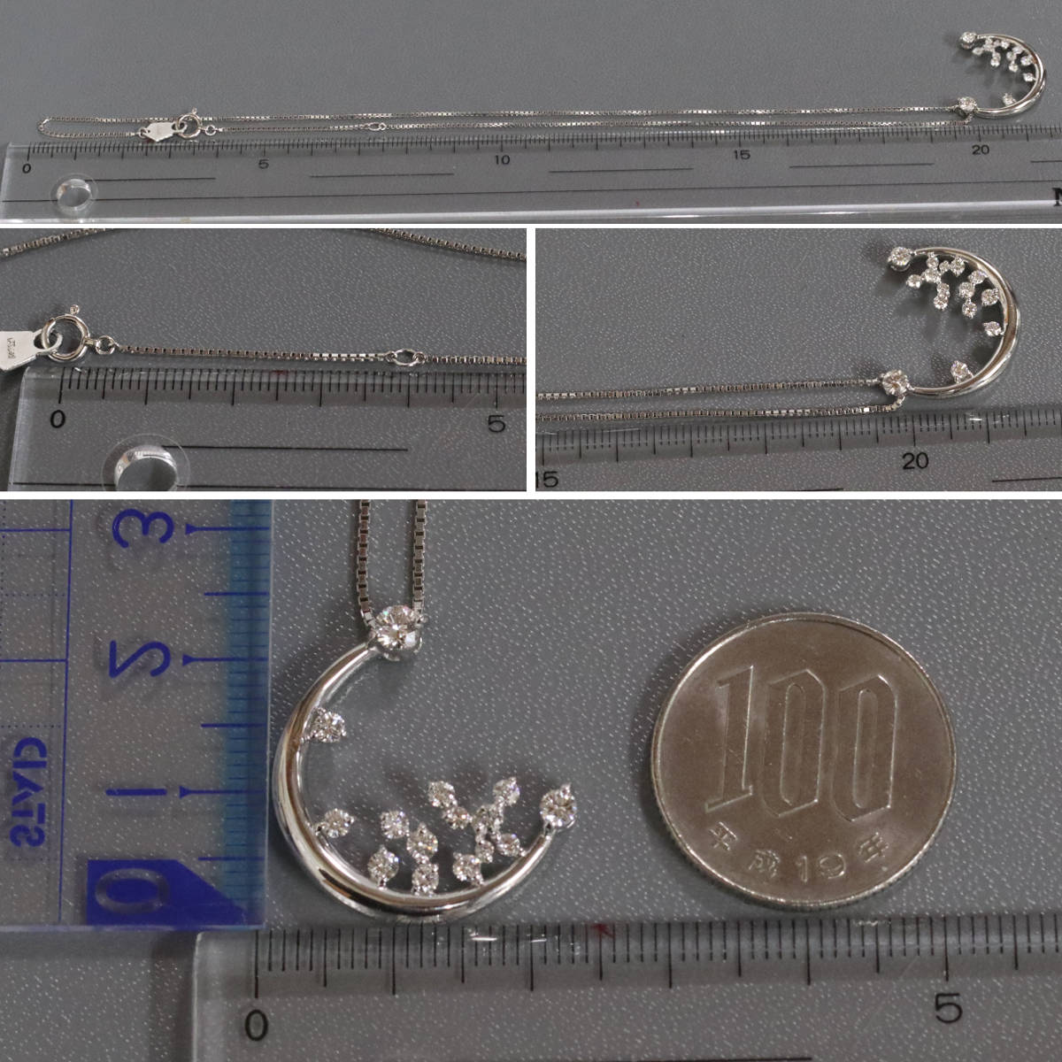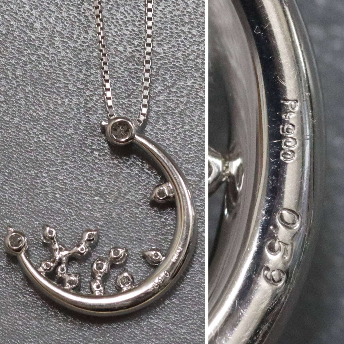 星の砂 Pt850/900ダイヤモンドネックレス 三日月モチーフ D0.59 8.9g 40cm 内外箱
