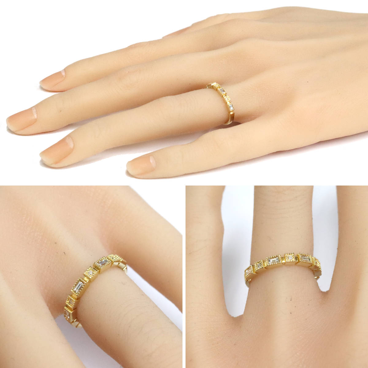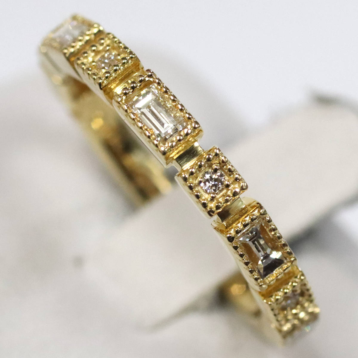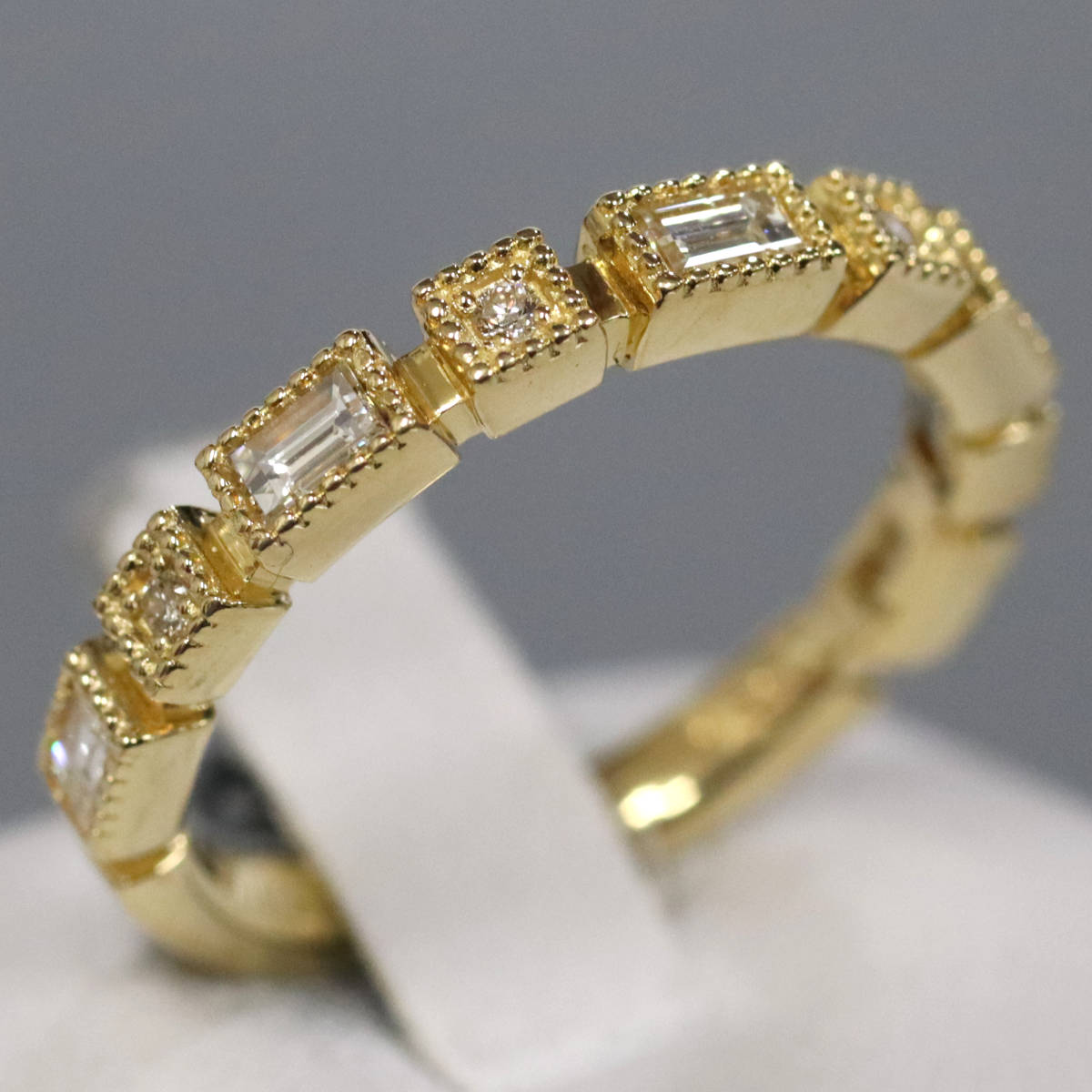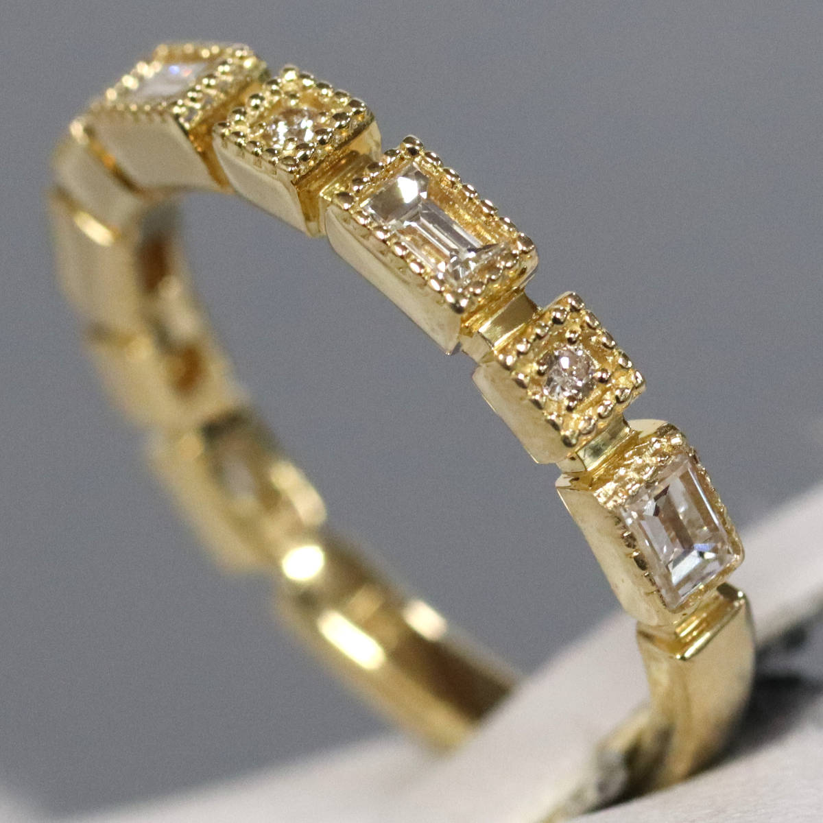 ラウンドブリリアントとバゲットカットのダイヤモンドが交互にセットされています。