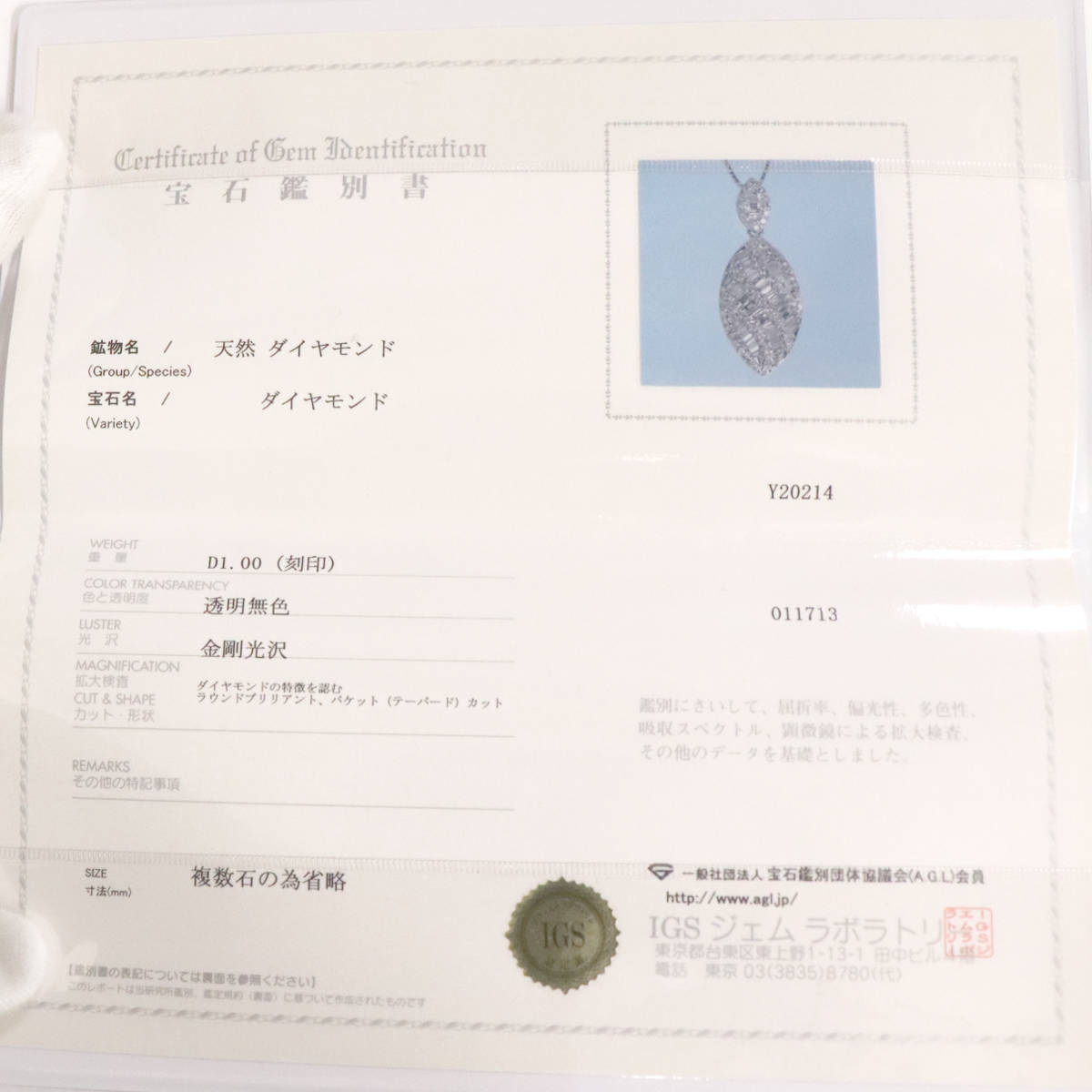 K18WGダイヤモンドペンダント D1.00 5.3g AJ付44cm 鑑別書