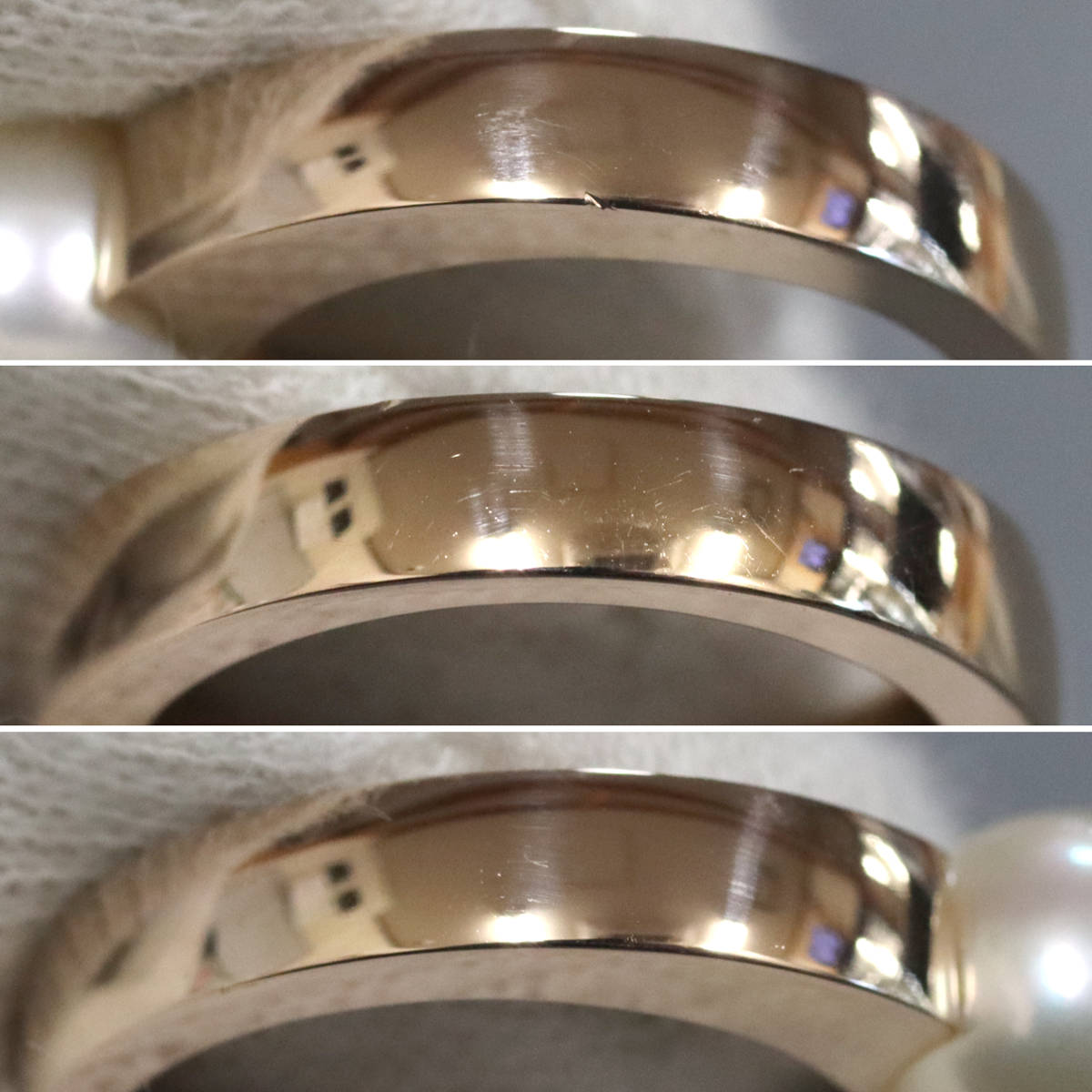 地金には小傷があり、写真5枚目上のようにリング底部に小さな欠けがあります。