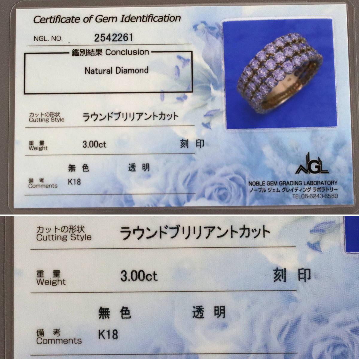 K18ダイヤモンドリング D3.00 5.2g #12 鑑別カード