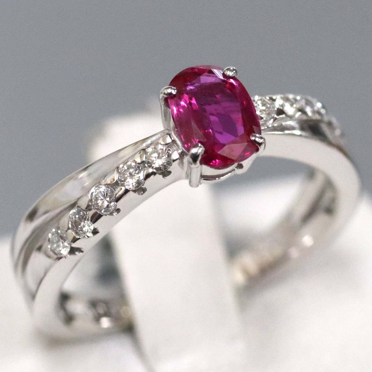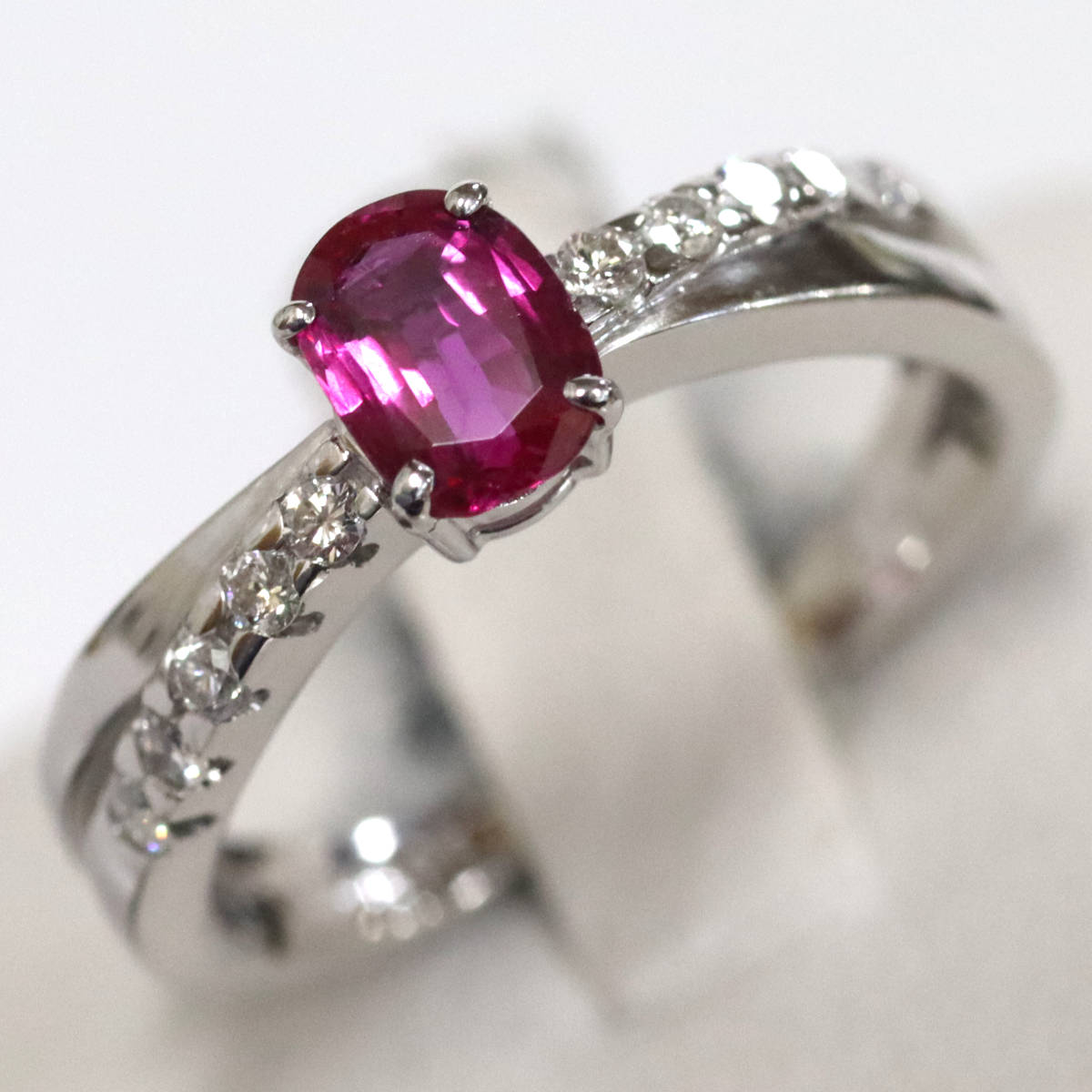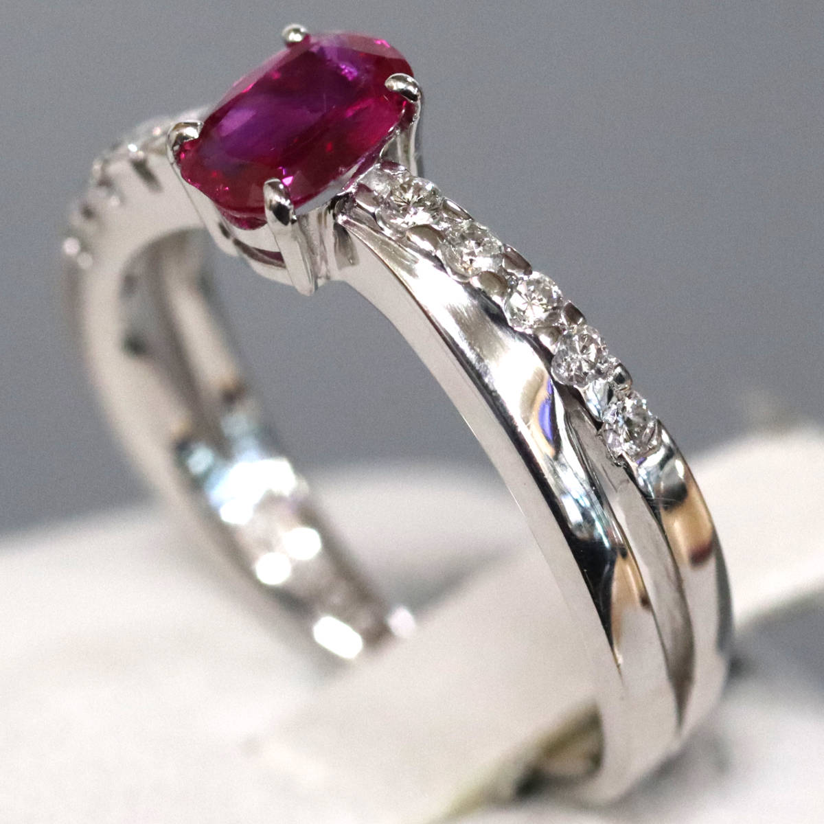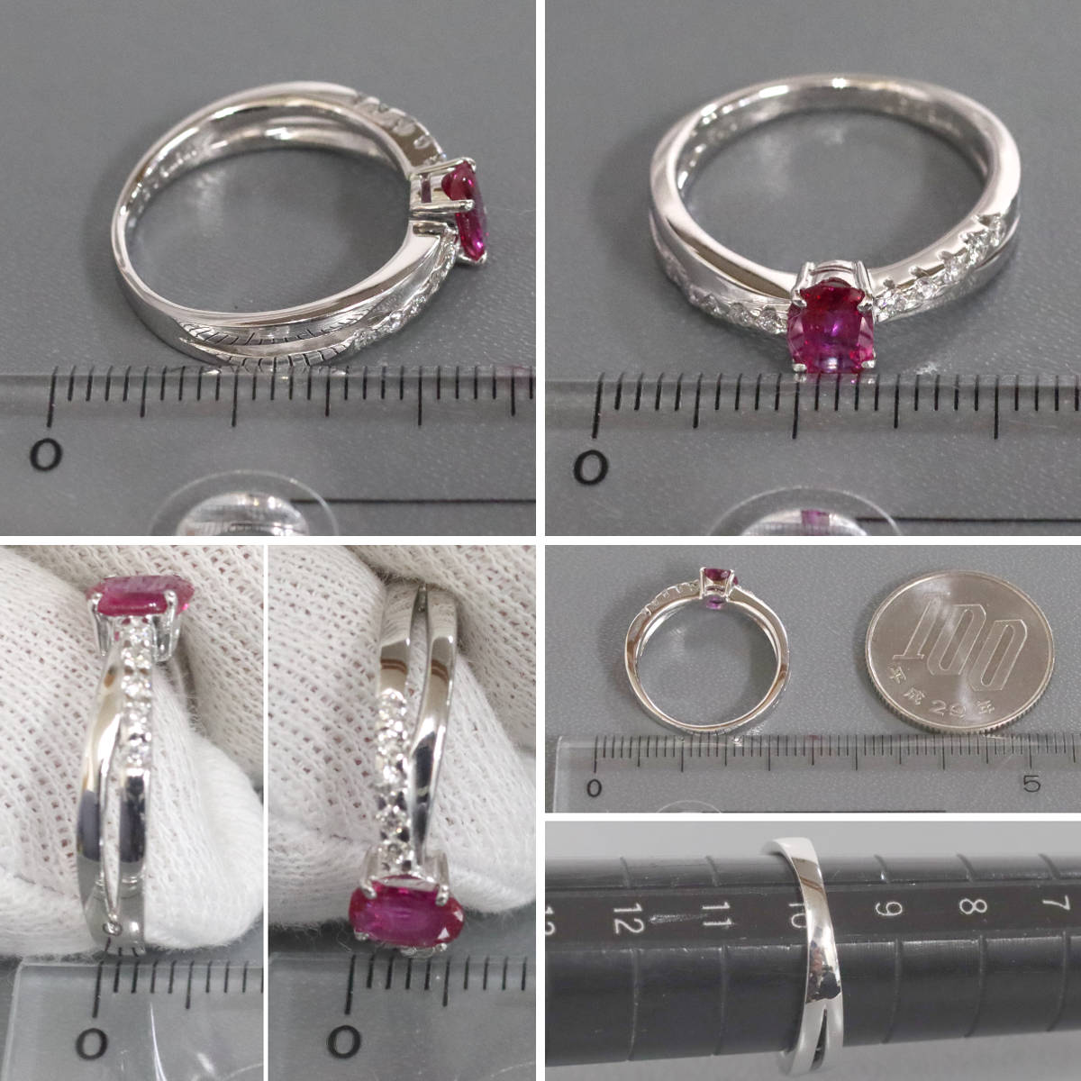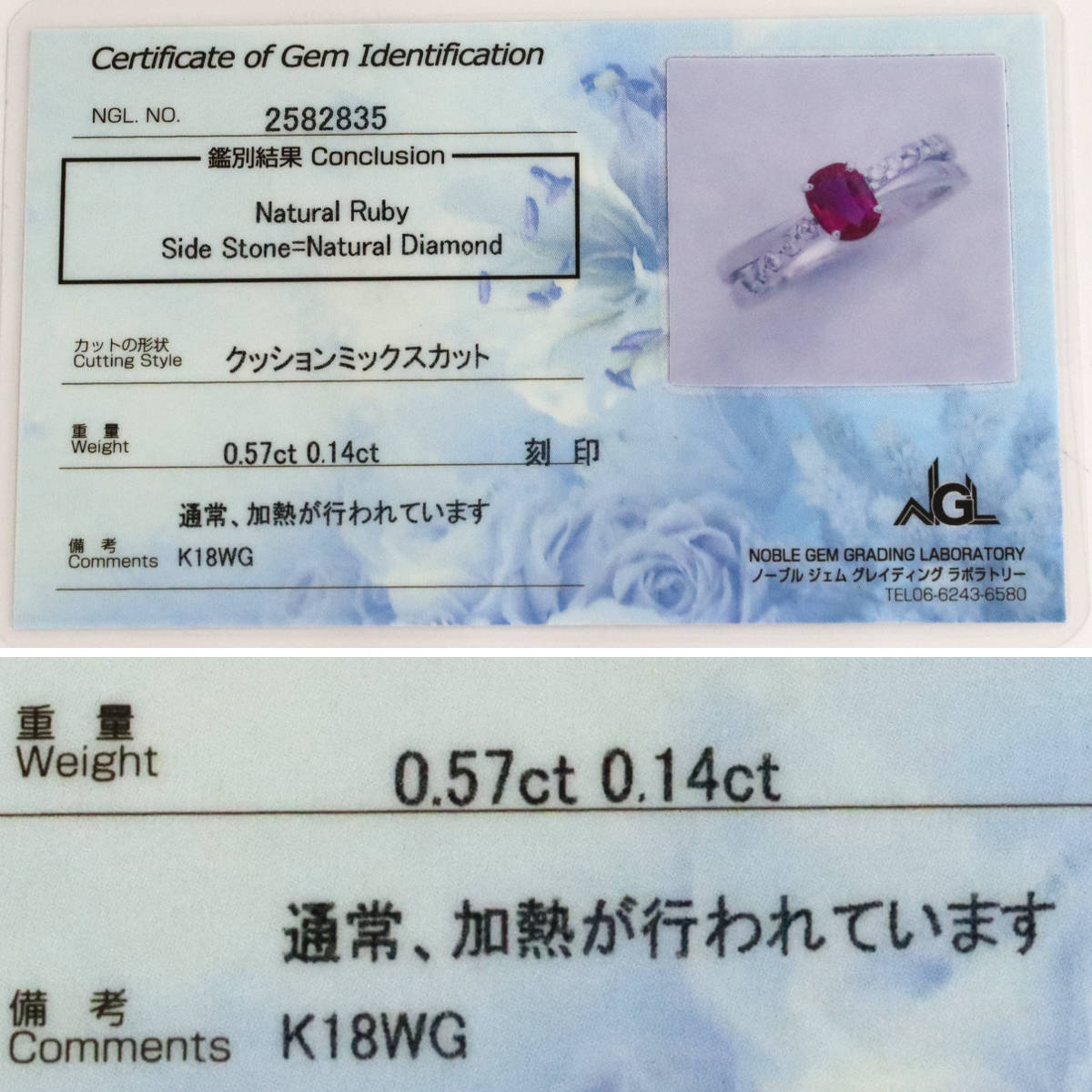 K18WGルビーダイヤモンドリング R0.57 D0.14 3.9g #10 鑑別カード