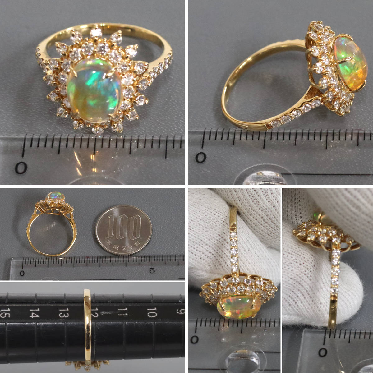 K18オパールダイヤモンドリング O1.63 D0.85 3.5g #12 鑑別カード