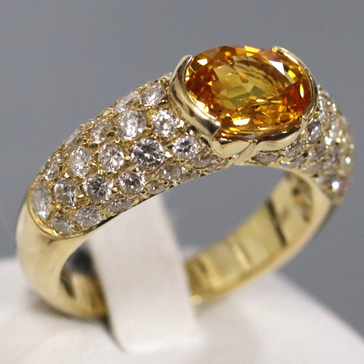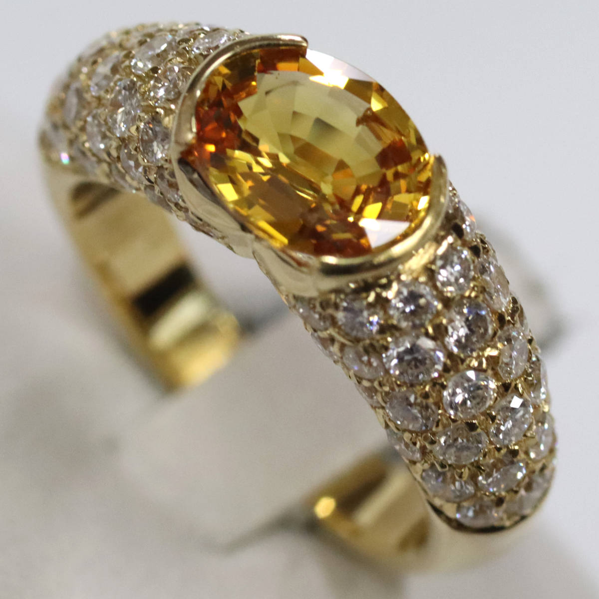 K18ゴールデンサファイアダイヤモンドリングの中古品です。