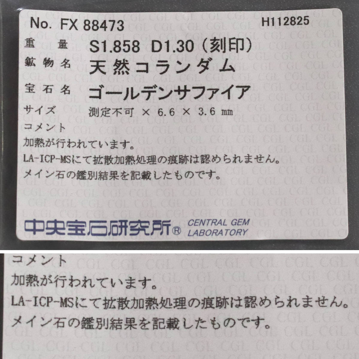 天然のゴールデンサファイアと認めるソーティングが付属します。