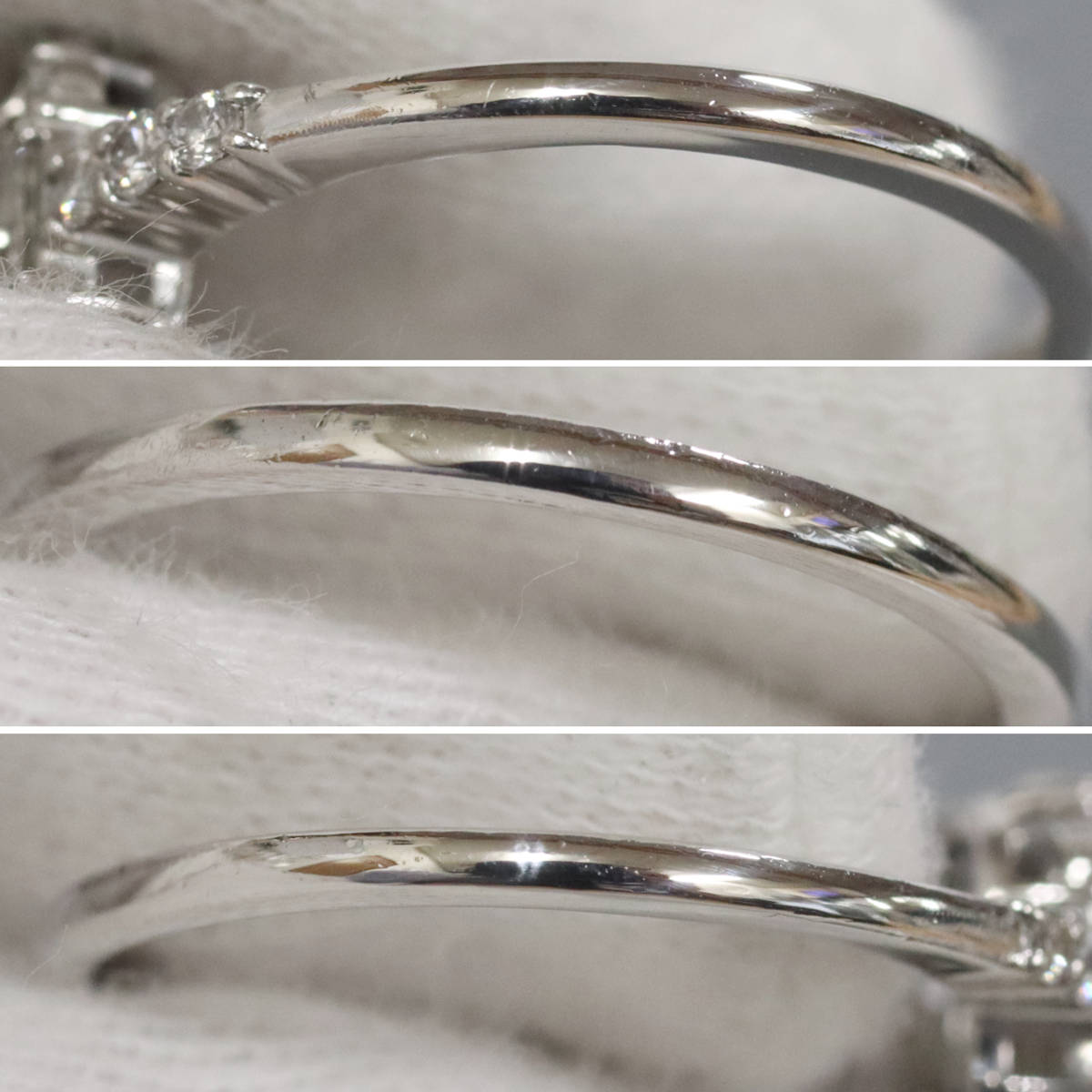 ダイヤモンドは無色に近い色味で、わずかにインクルージョンがありますが照りよく輝きます。